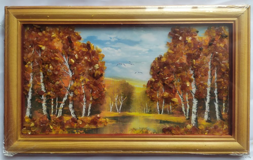 Картина c натуральным янтарём, в деревянной рамке (с покрытием).