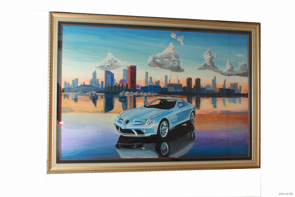 Масло холст,2014 г. Размер 80х120 см (сам холст),одет в двойной багет и закрыт оргстеклом (2мм) для лучшей защиты от пыли и влаги.Картина выставлялась на двух выставках и подойдет для украшения офиса или дома,отличный подарок для ценителей классических автомобилей.Больше фото и видео при личном контакте