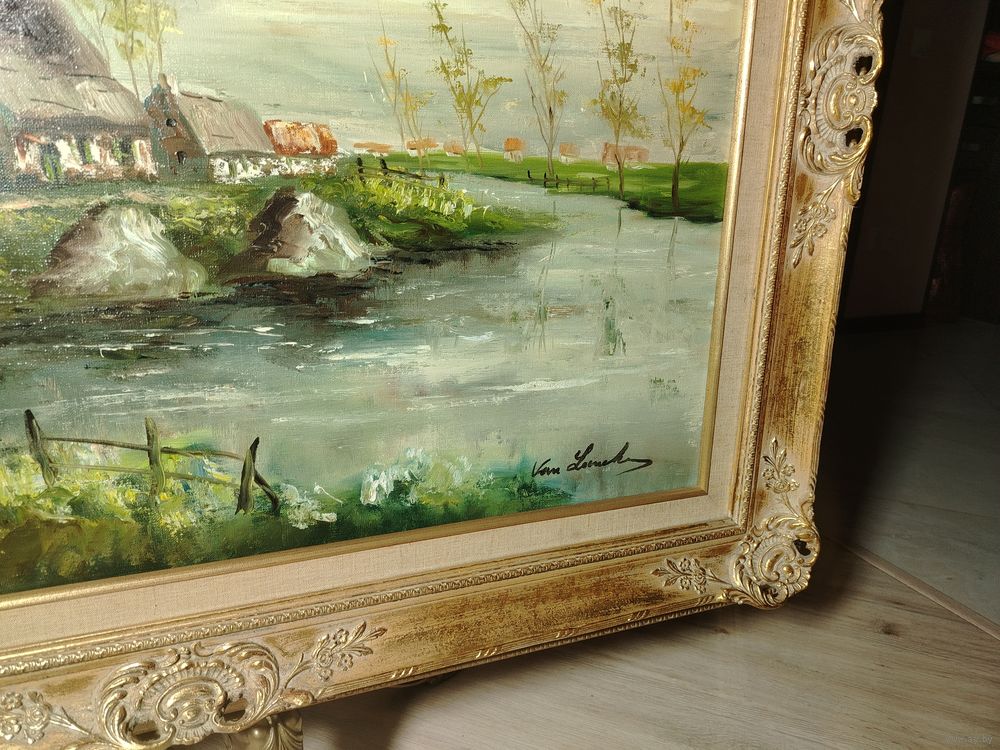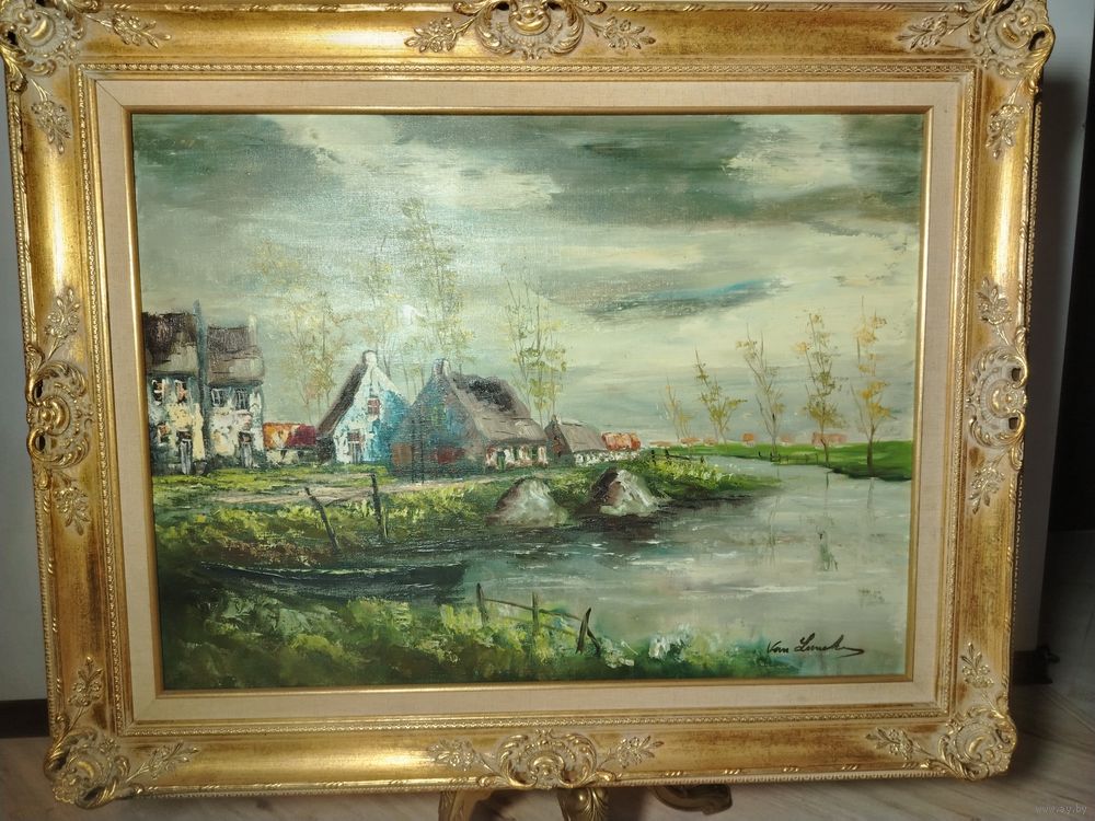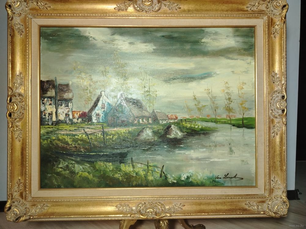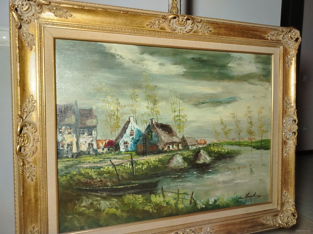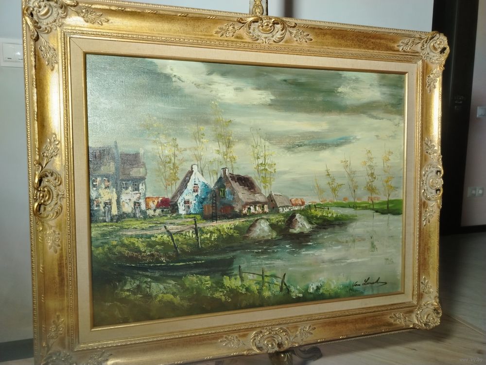 Картина в богатой раме. Европа. Холст, масло, подпись. Рама дерево и гипс. Высота 82см.ширина 102см. Рама 12 см.