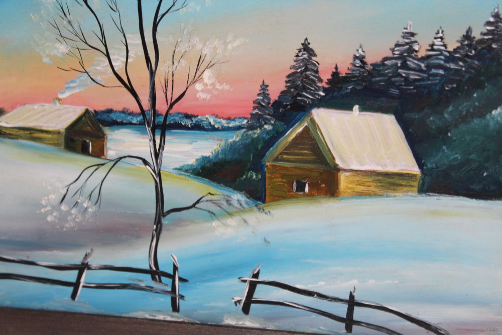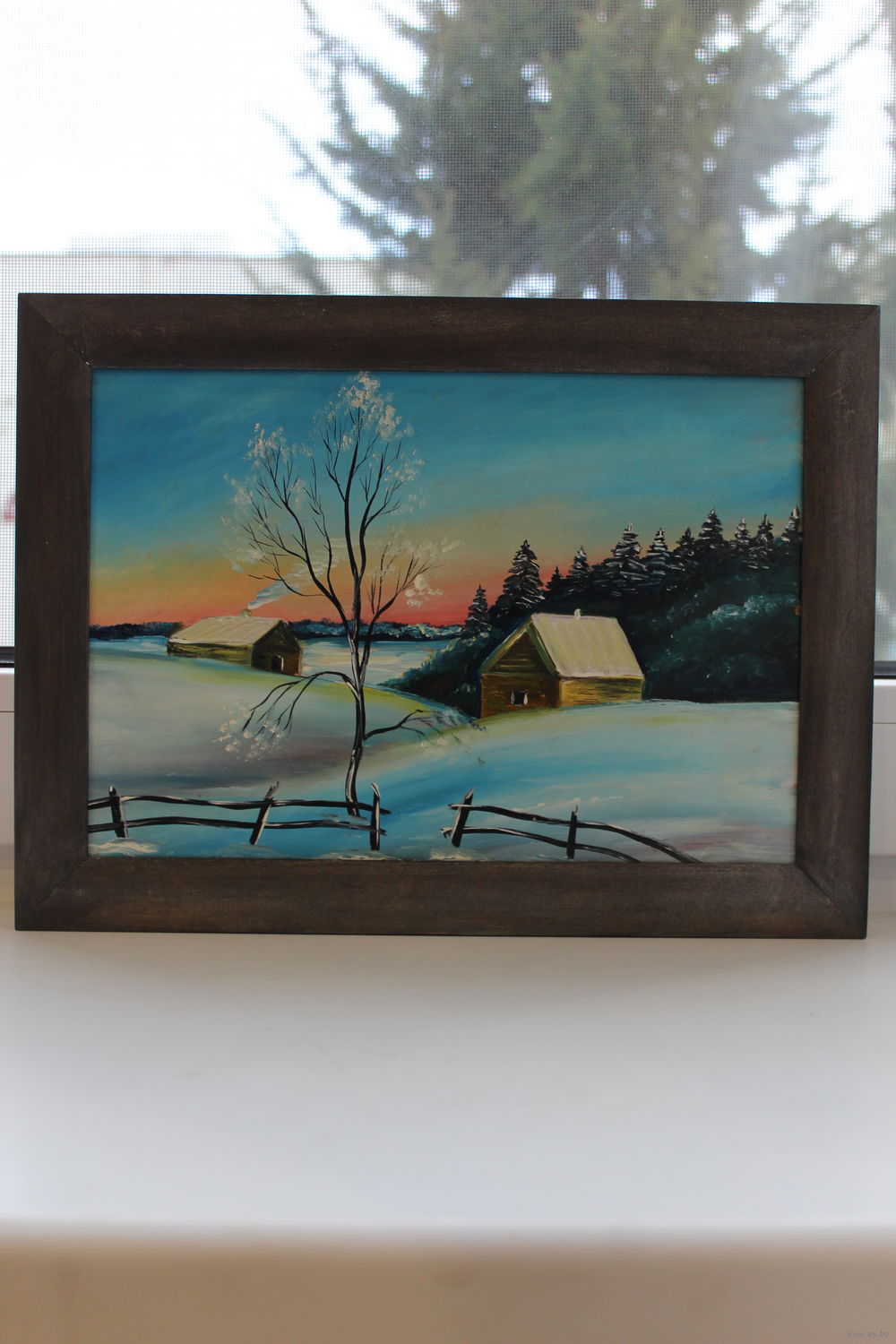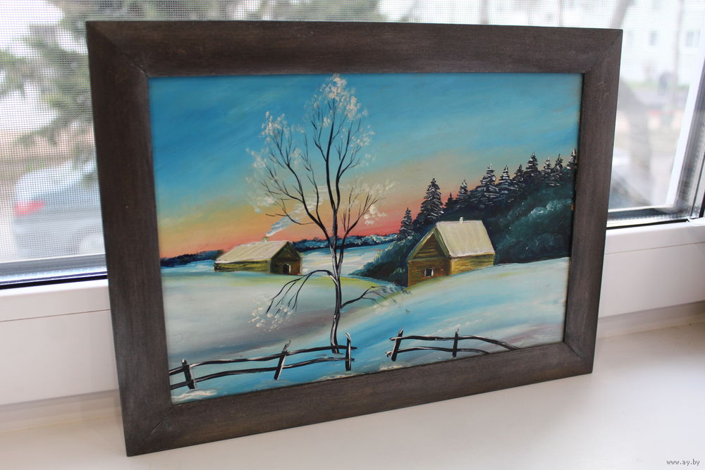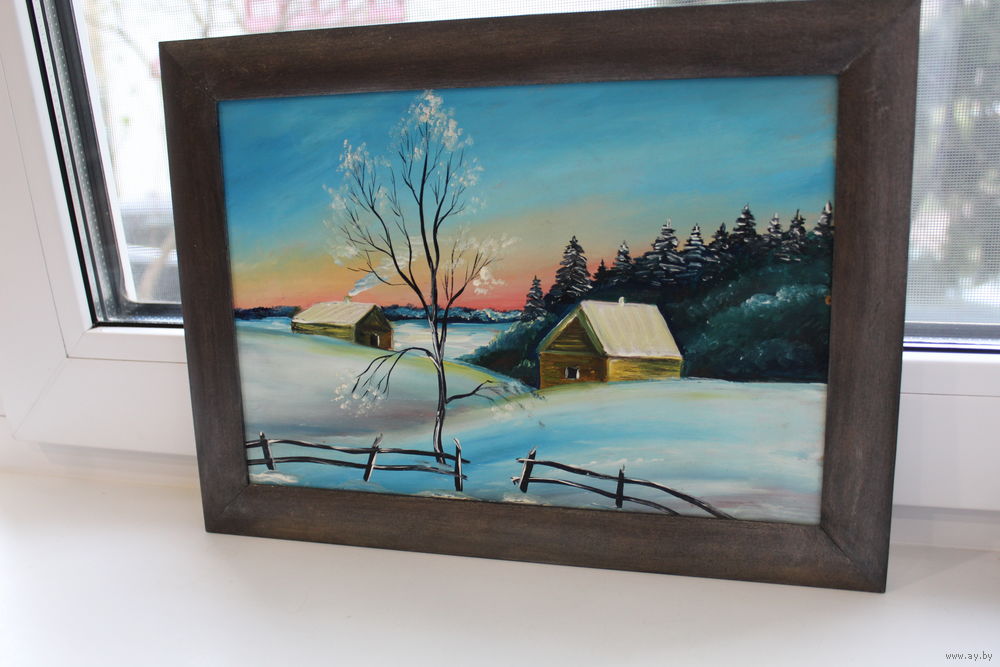 Картина в интерьер "Зимний хуторок" акрил,двп.