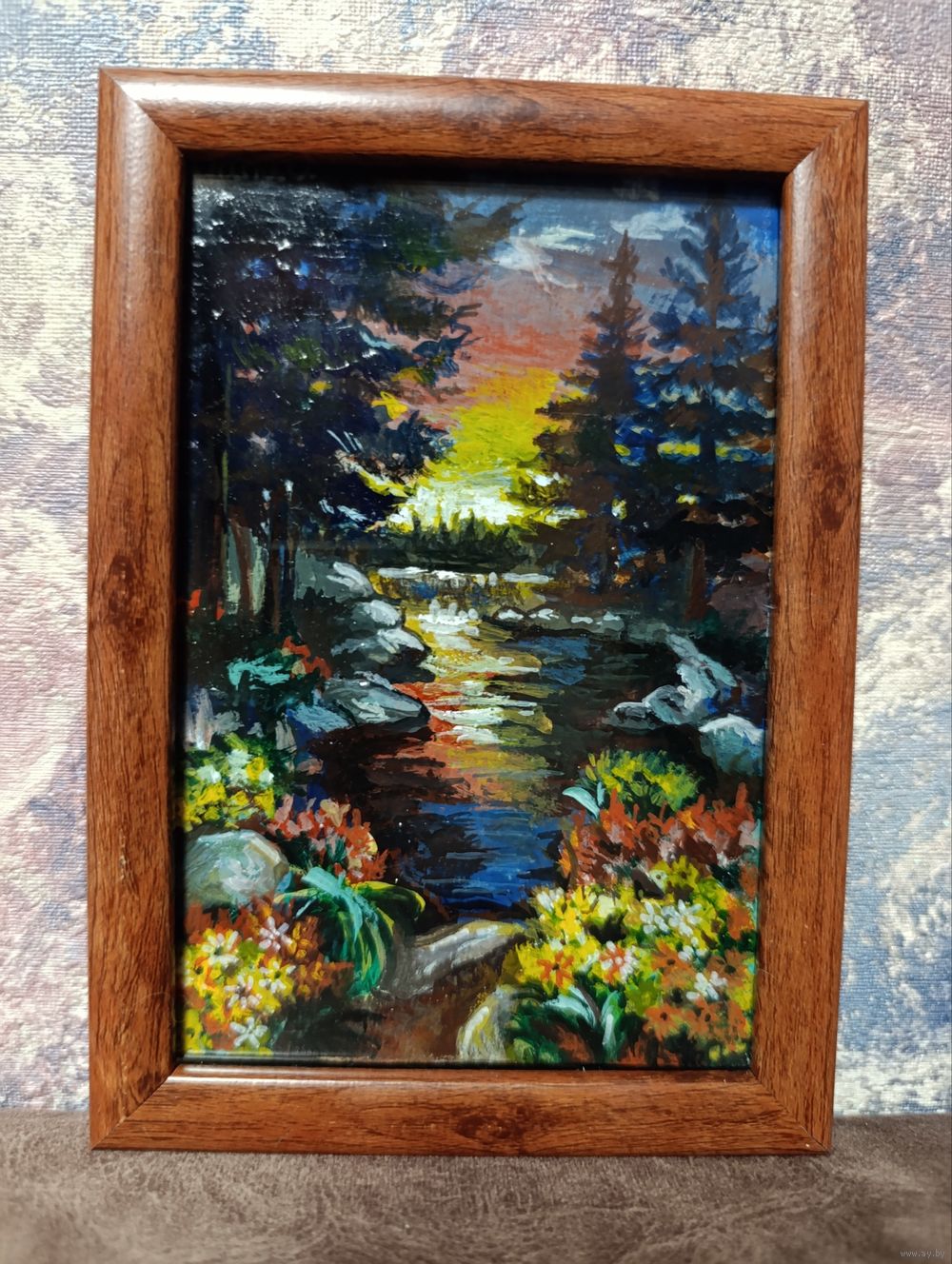 картина внутри - 10x15 на двп, темперные краски. Рамка со стеклом