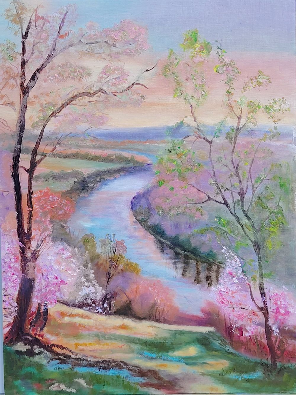 Картина Весна написана мною в апреле текущего года. Холст на картоне, масло, 40х30. Применена техника мастехина. Смотрится изящно. Прекрасное дополнение интерьера.