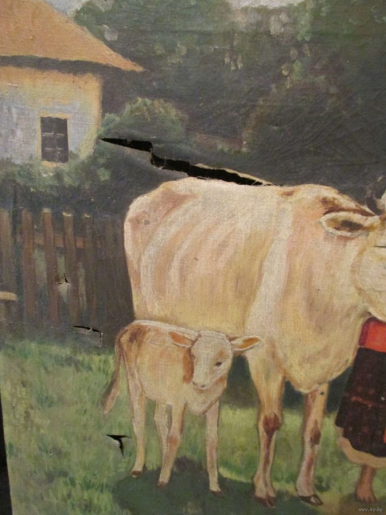 Размер 77/57см. В некоторых местах порван холст и старая реставрация в районе лба животного (см фото).