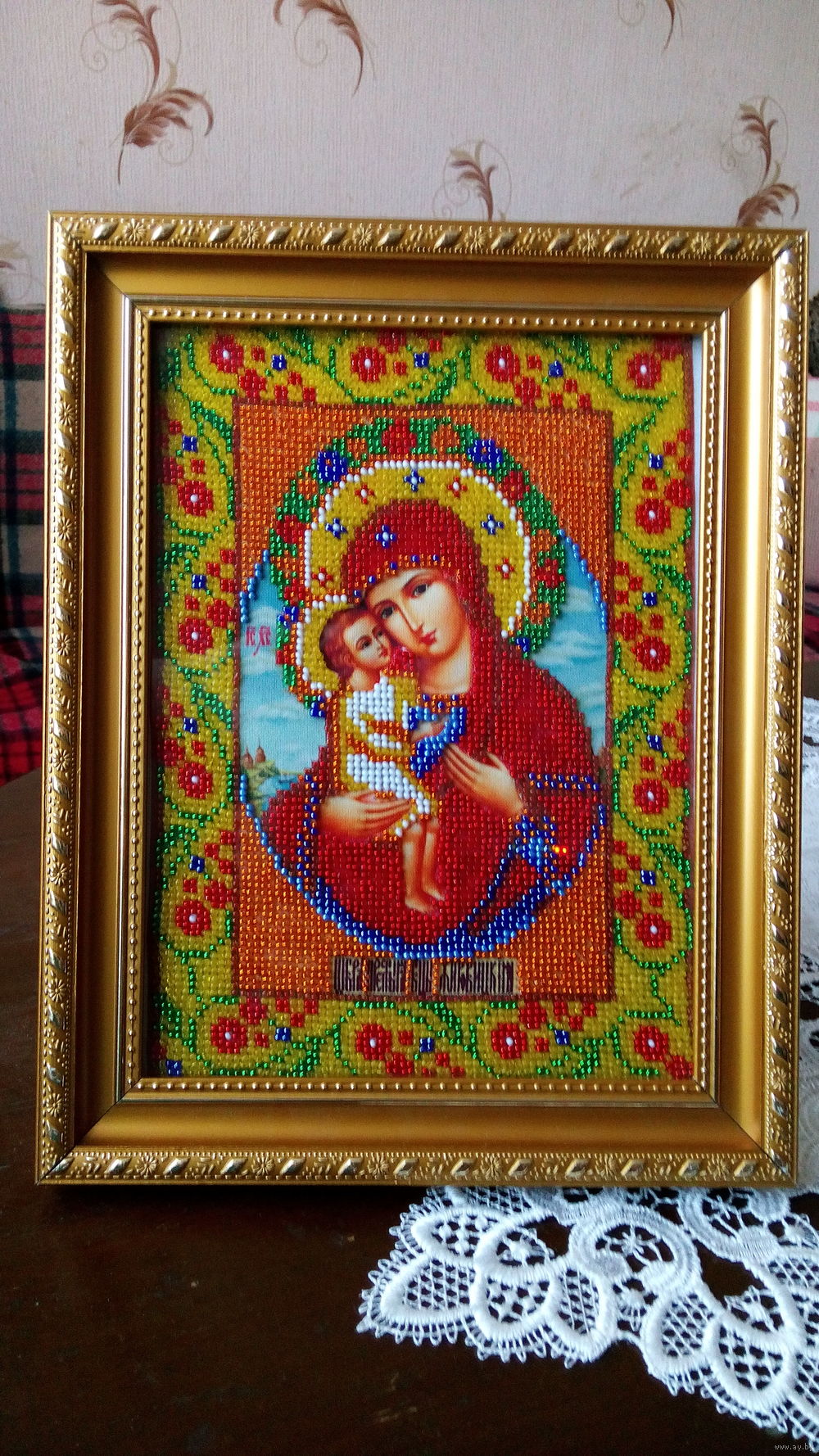 Ручная вышивка. Картина - Икона. Картина вместе с рамкой! Размеры : 225 х 285 мм.