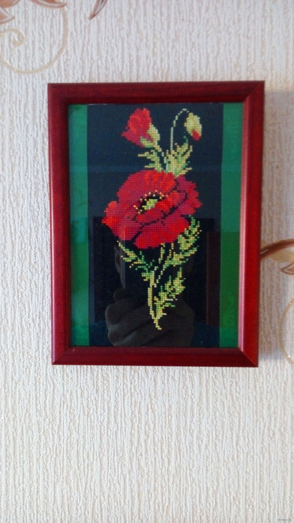Ручная вышивка. Картина - Цветок. Продажа в рамке. Размеры : 150 х 200 мм.