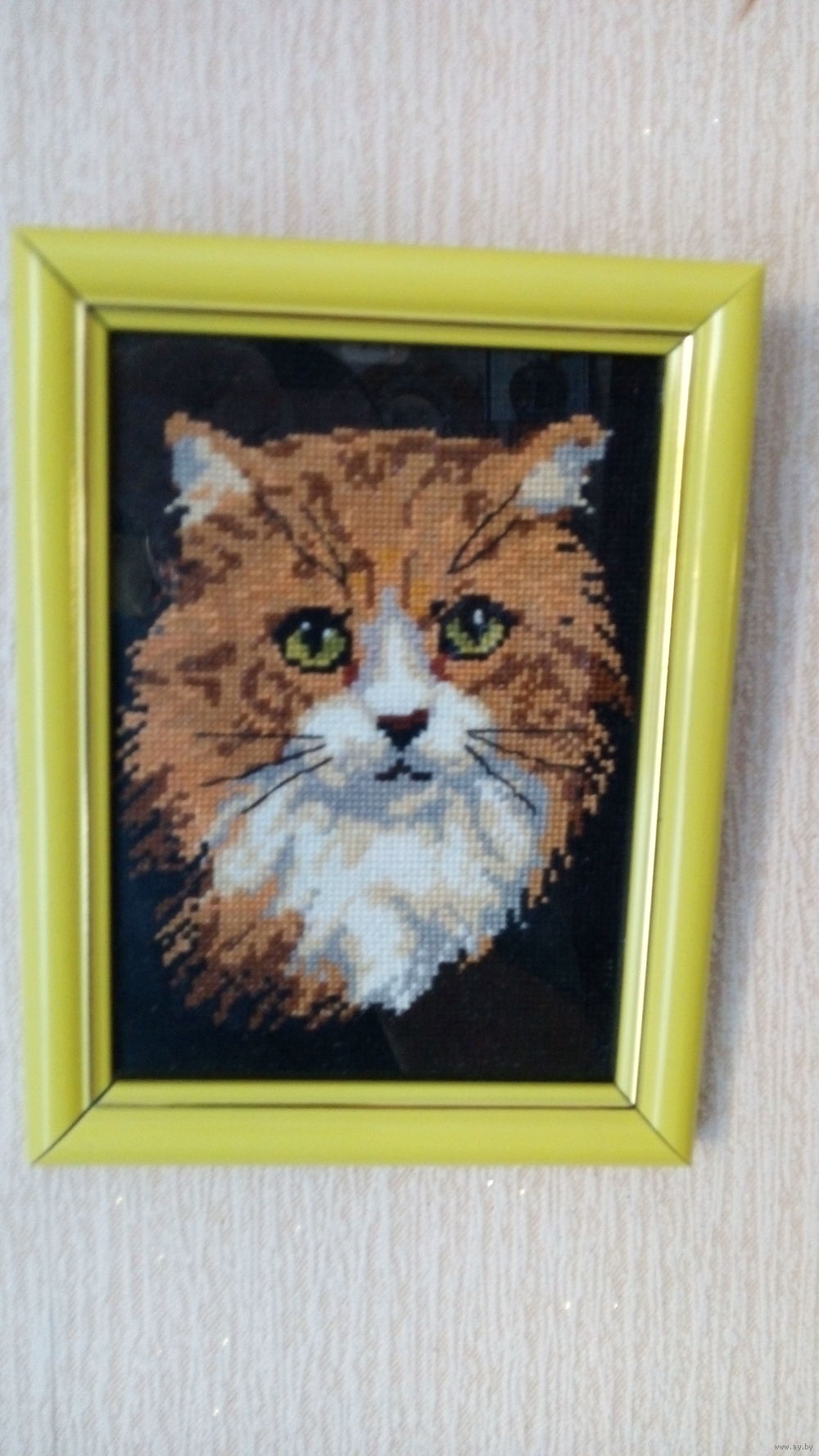 Ручная вышивка. Картина - Кот Рыжик. Продажа в рамке. Размеры : 160 х 210 мм.