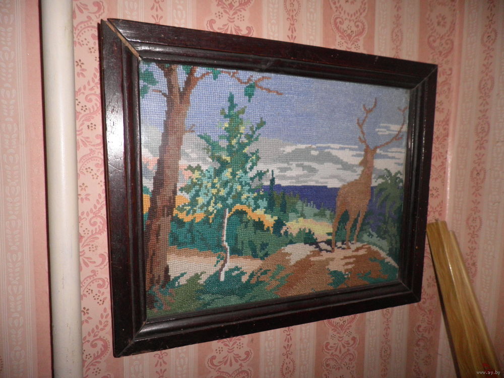 Вышивка,старая рамка,стекло.Р-р 45,5х36 см.