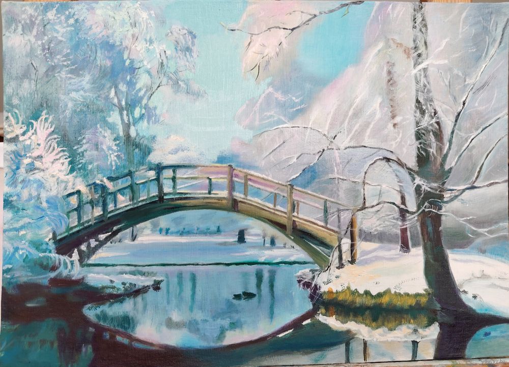 Картина Зима на реке написана в январе 2026 года. Холст на картоне, масло, 42х30.смотрится изящно. Прекрасное дополнение интерьера.