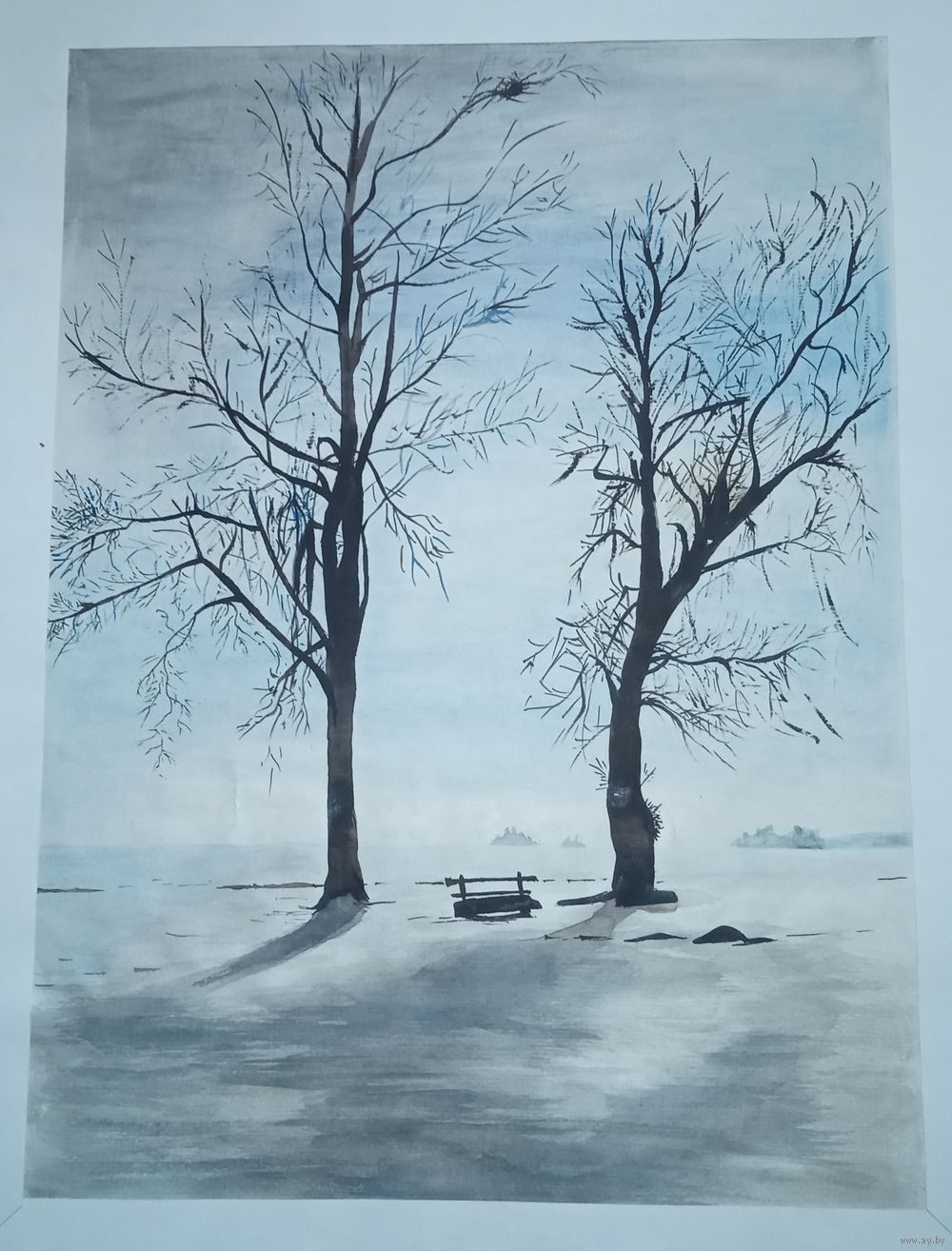 Актуально. Размер 47\33 см бумага.Автор не знаю. Хорошая качественная и позитивная работа. Зима или начало весны.