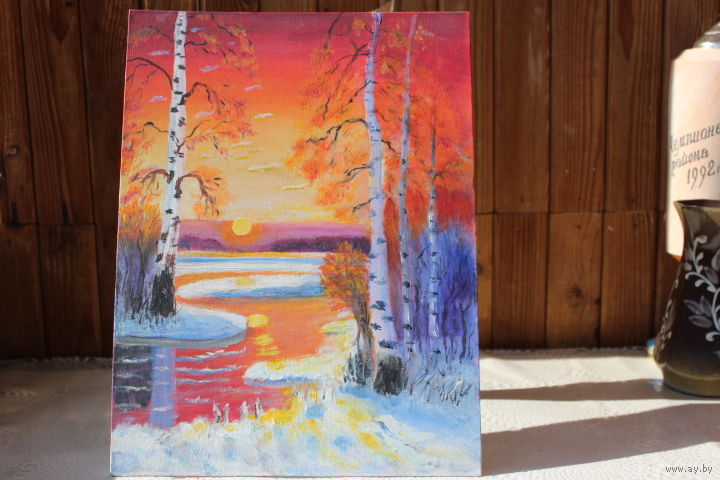 Картина "Зимний вечер" холст на картоне.
