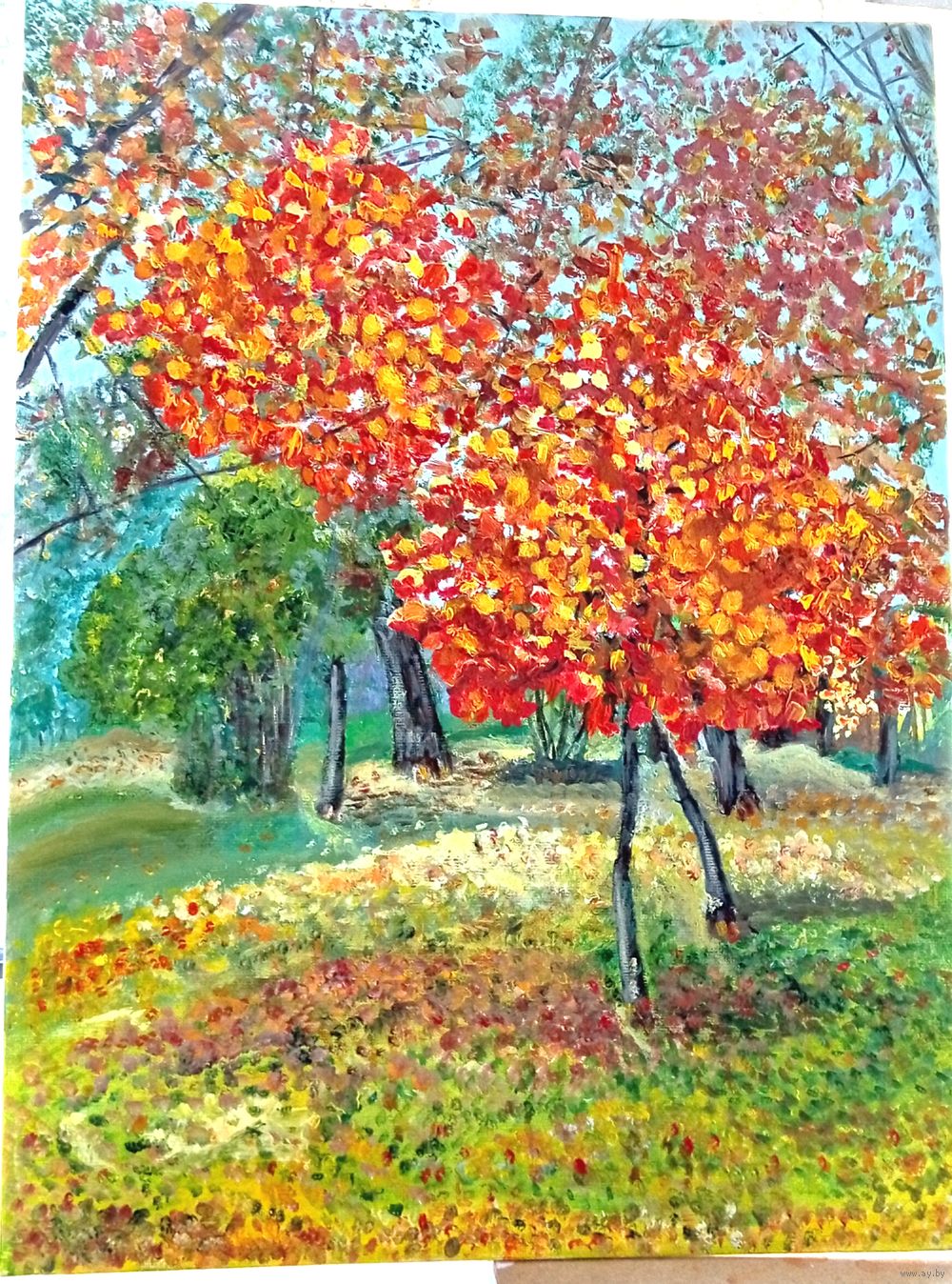 Картина Золотая осень написана маслом с натуры с использованием мастихина. Холст, масло, 40х30. Смотрится изящно. Прекрасное дополнение интерьера.