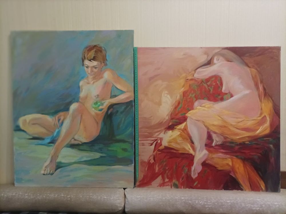 Картины Двух Дьяволиц торговли! LONG 89.6*69.8 & SHORT 79.6*79.6, в названии размер, ранние работы маслом дизайнера Historia Naturalis, подписаны автором А.Лори, на холсте 2000 год