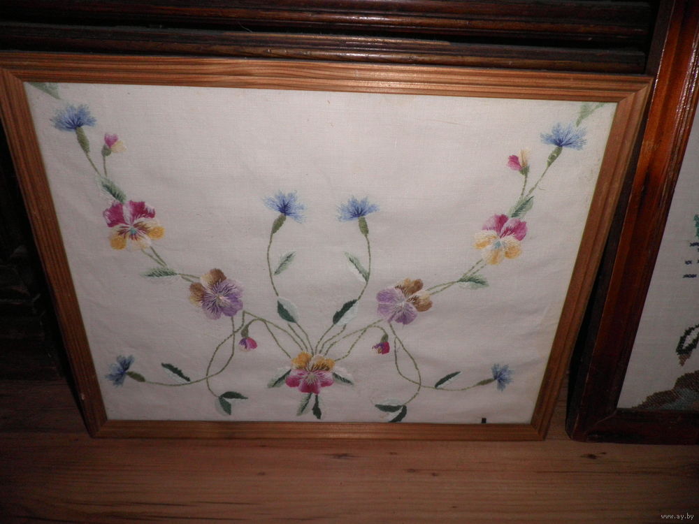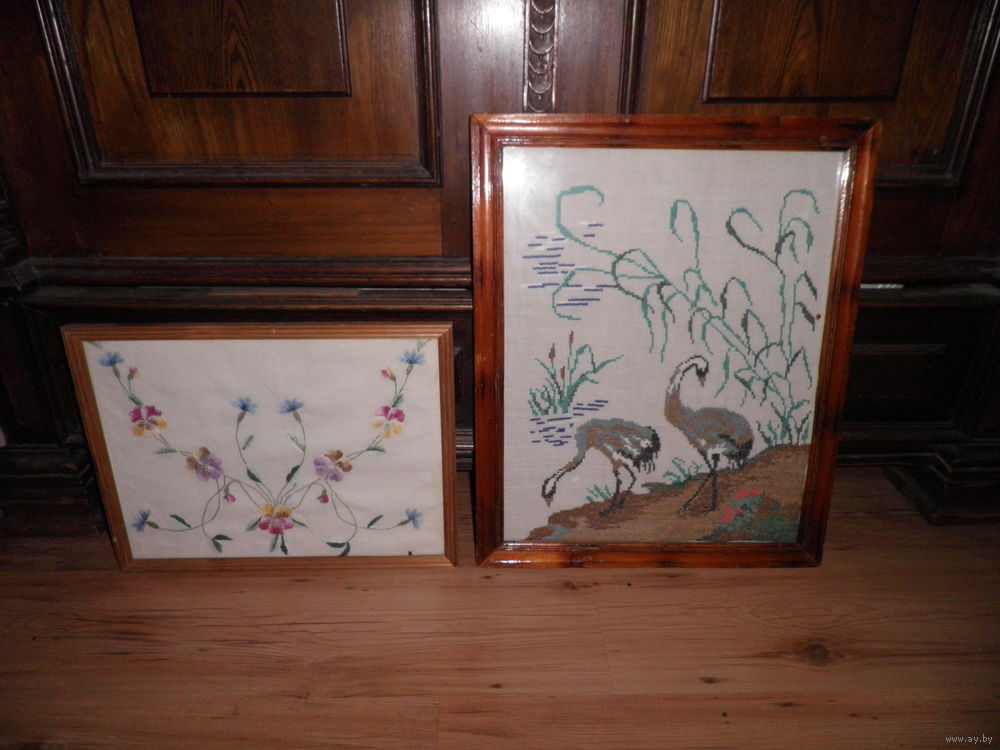 Р-ры 42,5х32,5см и 55х45 см.Ткань,вышивка,дерево,стекло.