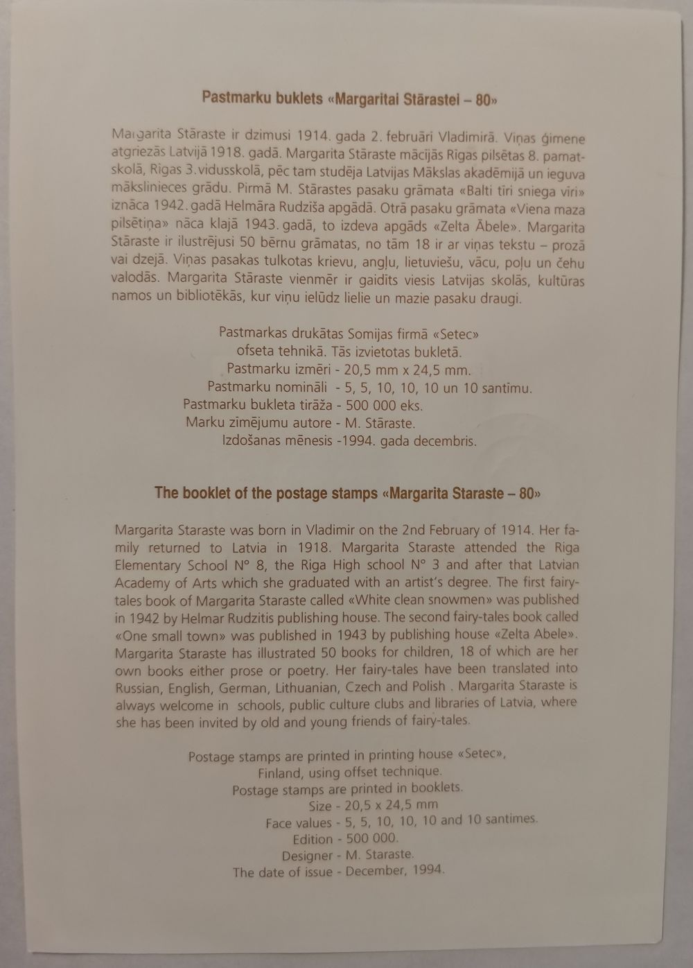 Картмаксимум Латвия 1994 Рождество (Margarita Staraste - 80)