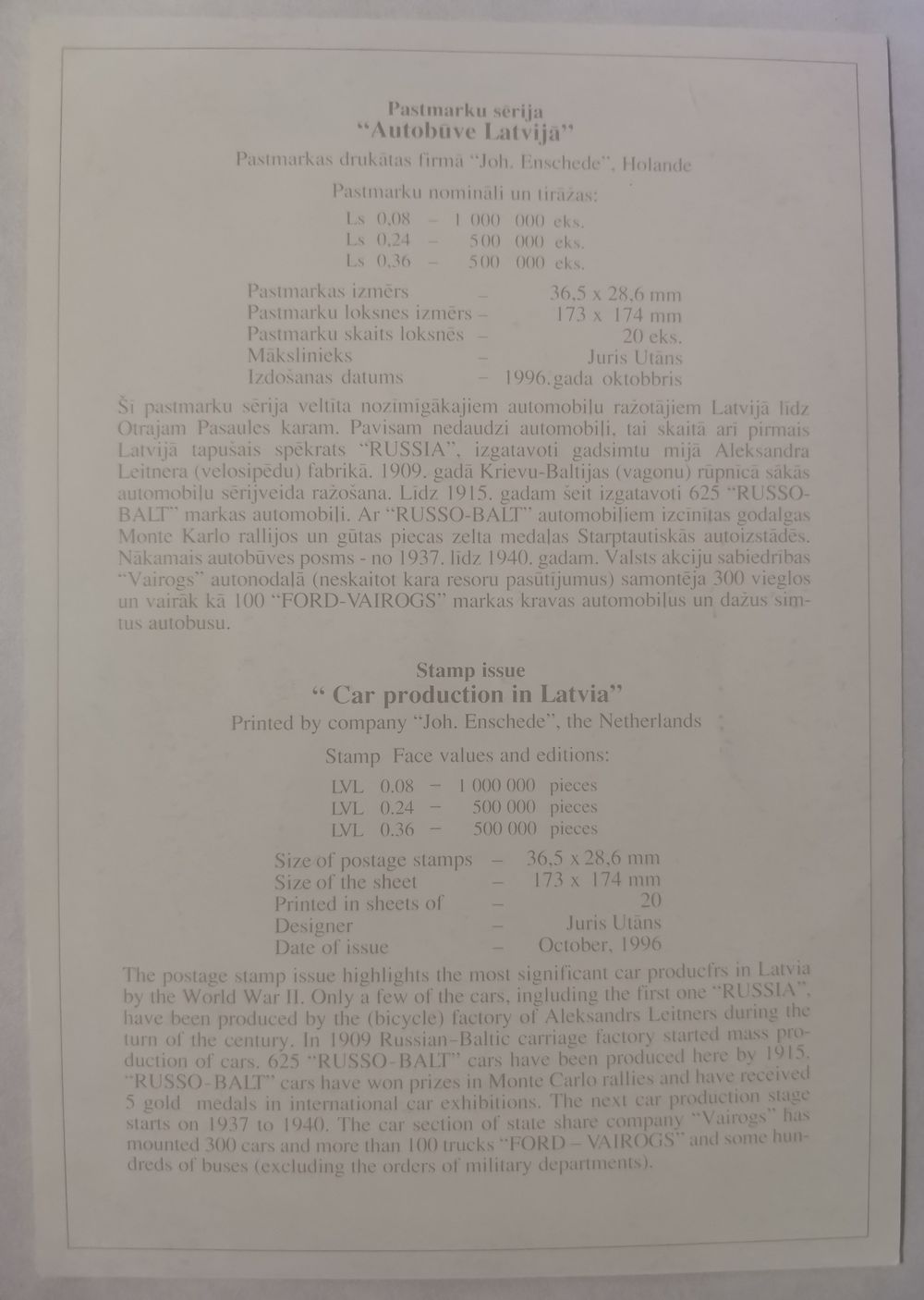 Картмаксимум Латвия 1996 Автомобили Латвии