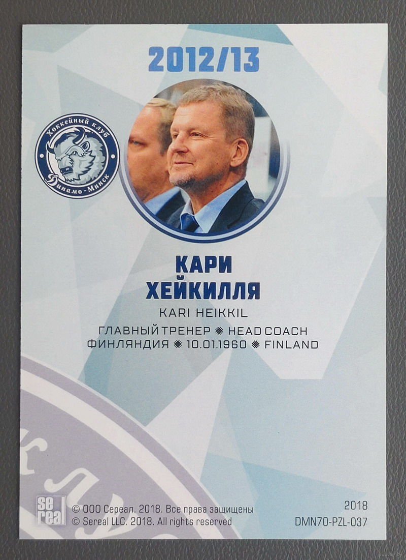 Карточка Кари Хейкилля. ХК "Динамо Минск". Коллекция "SeReal". 70 лет Динамо Минск. 2008-2018. DMN70-PZL-037