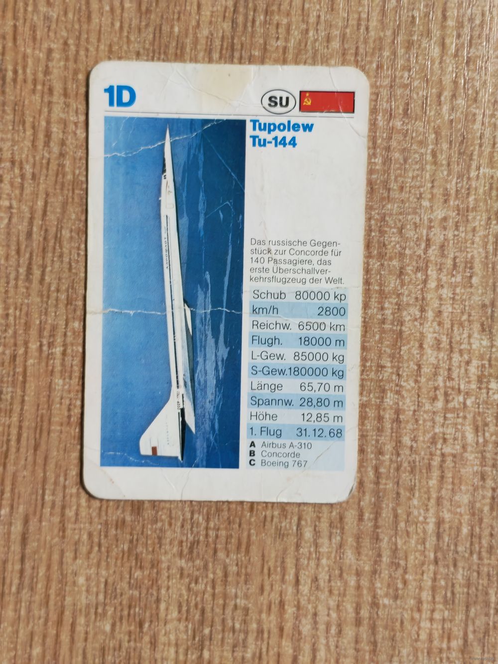 Карточка коллекционная со спецификациями самолета 70-х или 80-х годов (?)