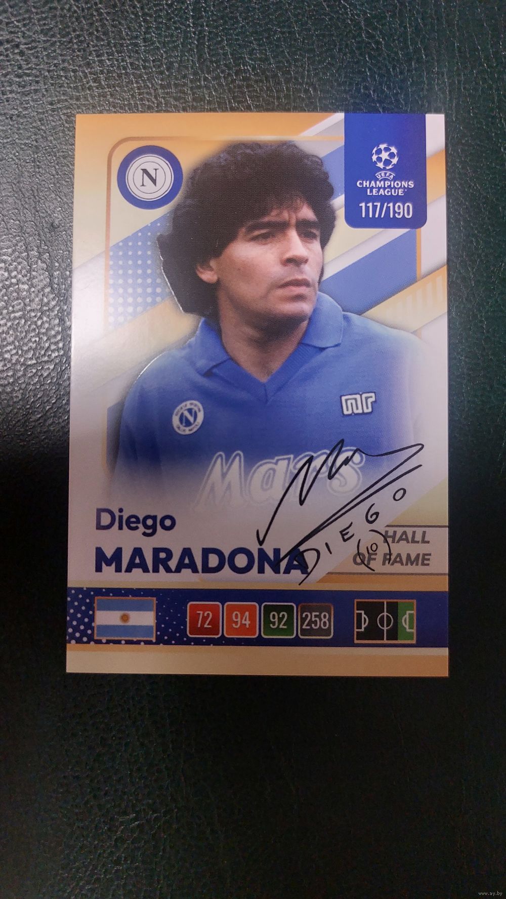 Карточка Лига Чемпионов, Диего МАРАДОНА (автограф), Наполи.