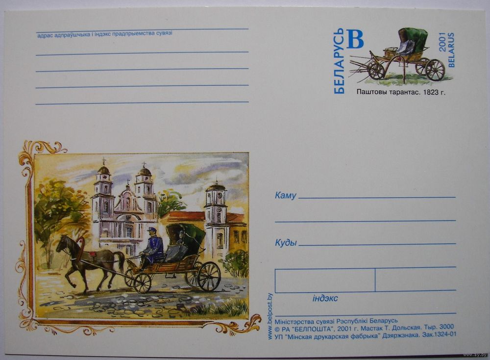 Карточка РБ. Почтовый тарантас 1823г. 2001г.