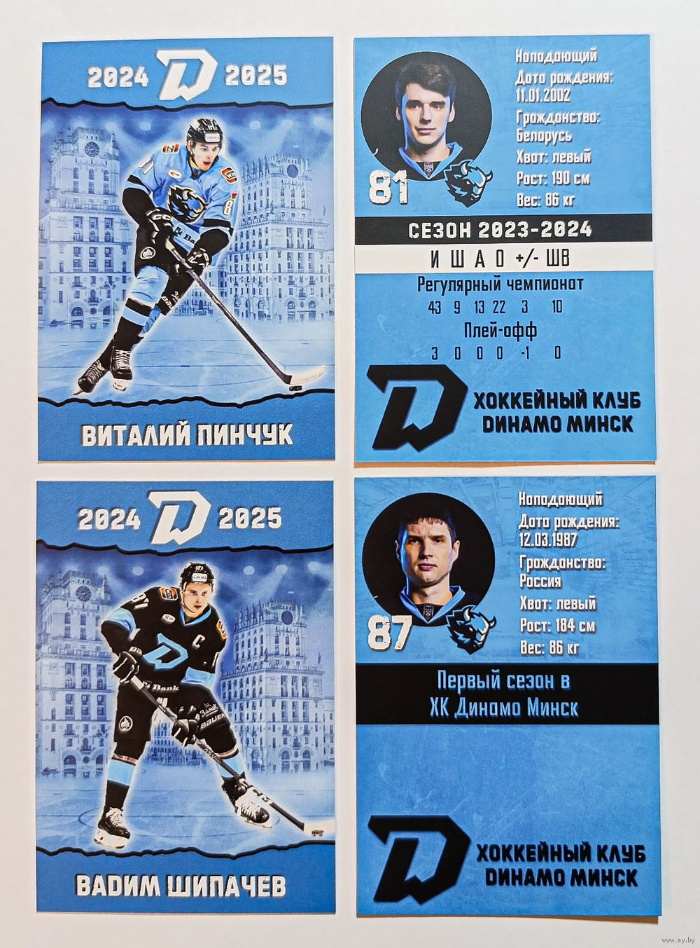 Карточки ХК Динамо Минск 2024-25 36 штук