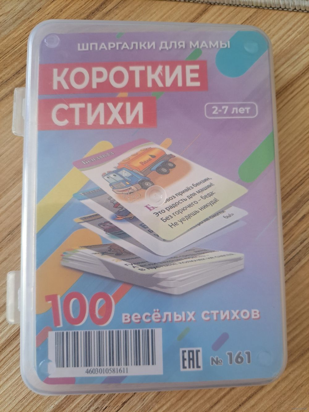 Карточки ламинированные, Короткие стихи (2-7лет), новые в пластиковом контейнере, 100 веселых стихов. Шпаргалки для мамы.