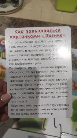Карточки Логика для детей от 3-х лет, тренирует мышление, внимание, память и мелкую моторику. Плотные, размер карточки 15 на 11,5 см. Все 20 карточек, двухсторонних. Хорошее состояние.