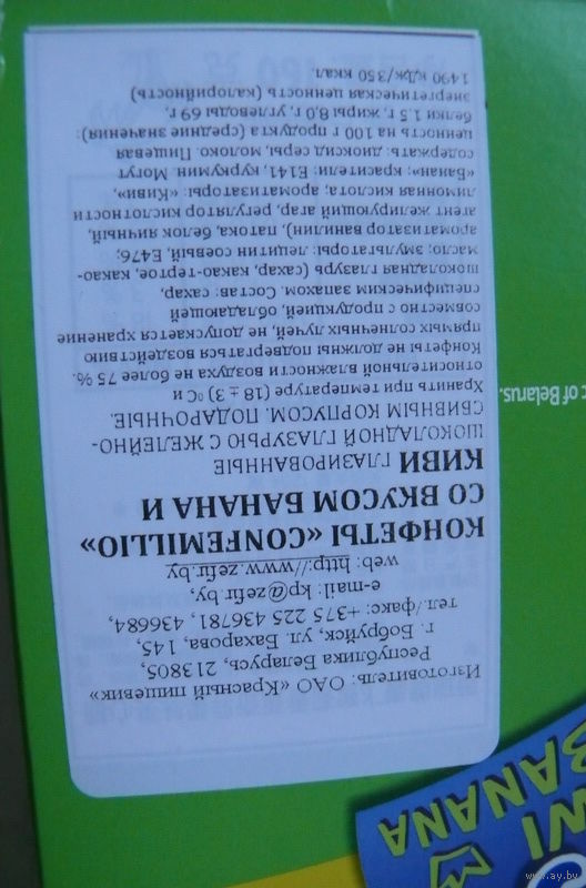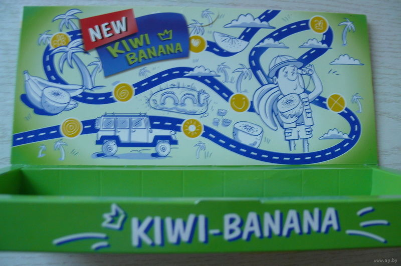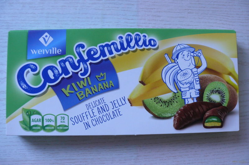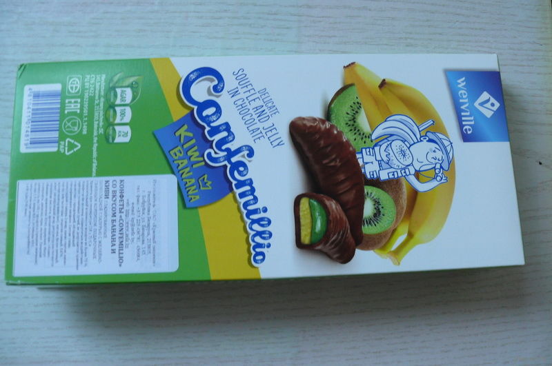 Картонная упаковка от конфет -- Confemillio, со банана и киви (2022, РБ, Бобруйск, "Красный пищевик", 160 г).