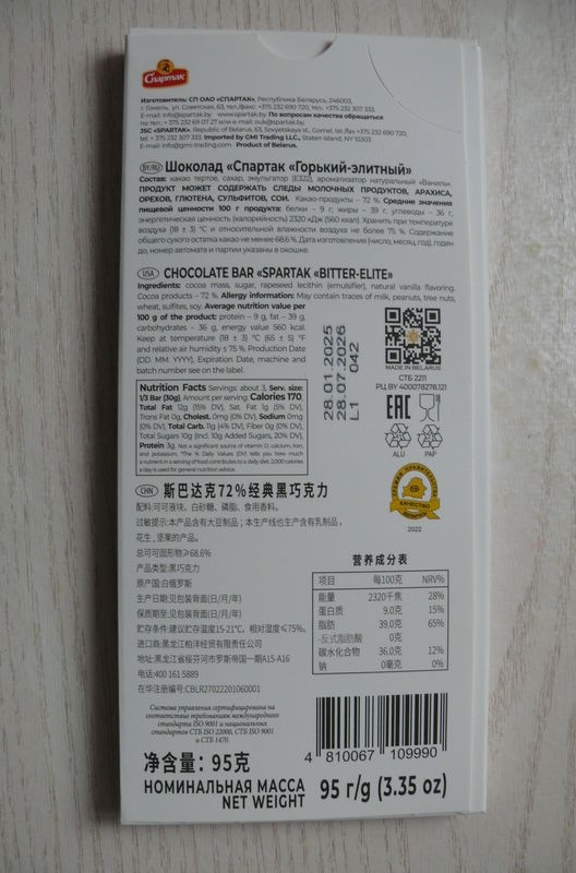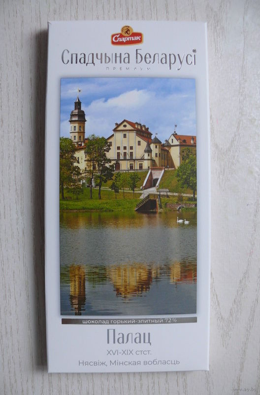 Картонная упаковка от шоколада -- горький-элитный 72% "Дворец. Несвиж. Минская область" из серии "Спадчына Беларусi" (2025, РБ, "Спартак", 95 г).