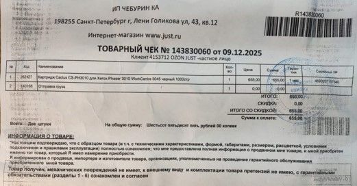 Картридж CS-PH3010 черный для принтеров. Новый (заказал ошибочно), не вскрывался.