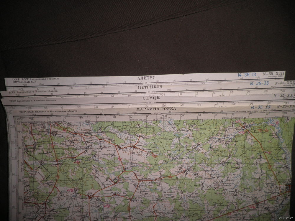 Карты (39х34 см) Алитус,Петриков,Слуцк,Марьина Горка.70-е г.