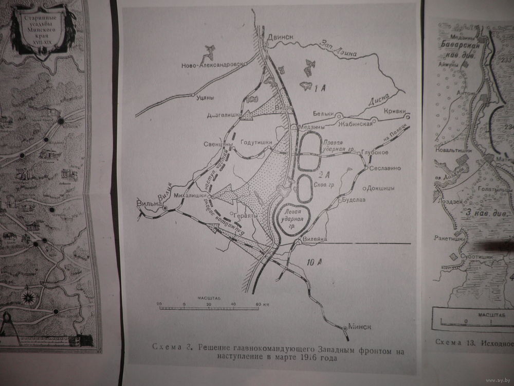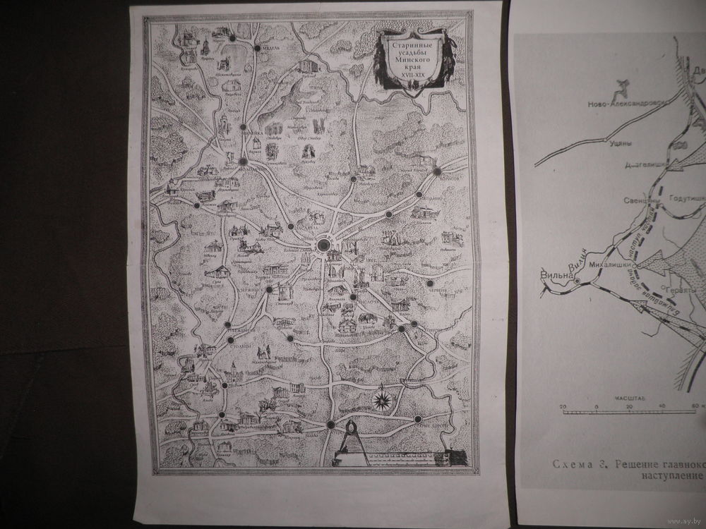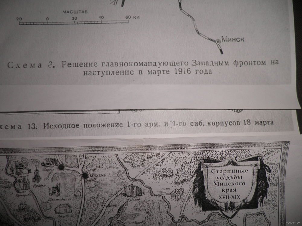 Карты(41,5х29,5 см.)Старинные усадьбы Минского края 17-19 века и наступательной Нарочанской операции группы генерала Балуева март месяц 1916 г.ПМВ.(Лот 05)С рубля.