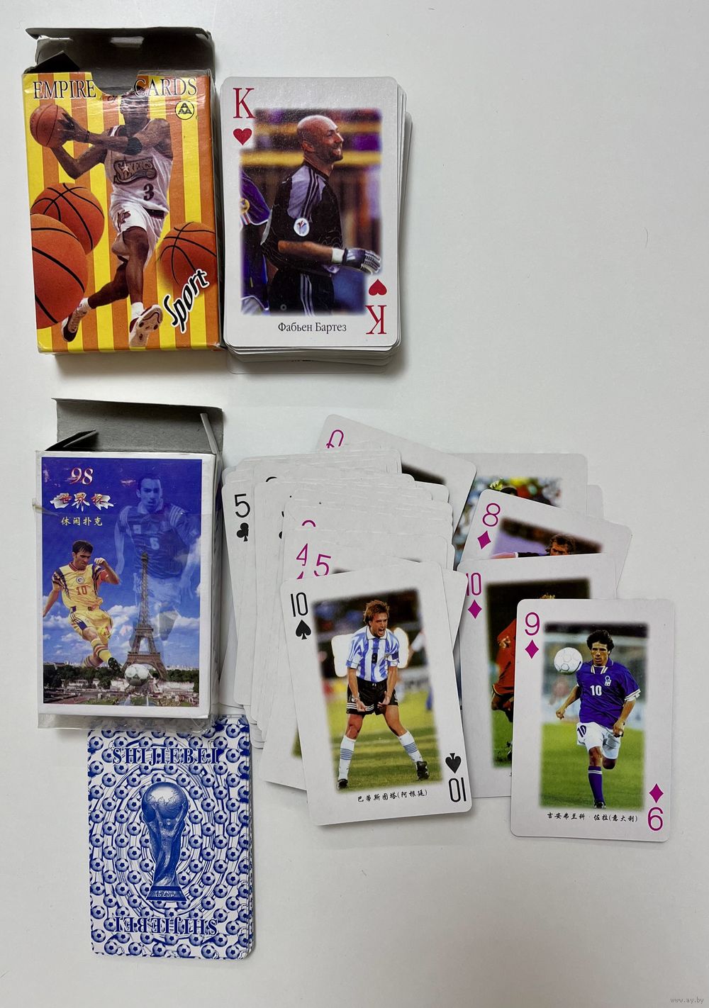 3 колоды игральных карт. Серия спорт . Новые, неиграные. Распродажа коллекции. Четвертая колода "Баскетбол" в подарок (имеются следы эксплуатации, утеряна упаковочная пачка).
