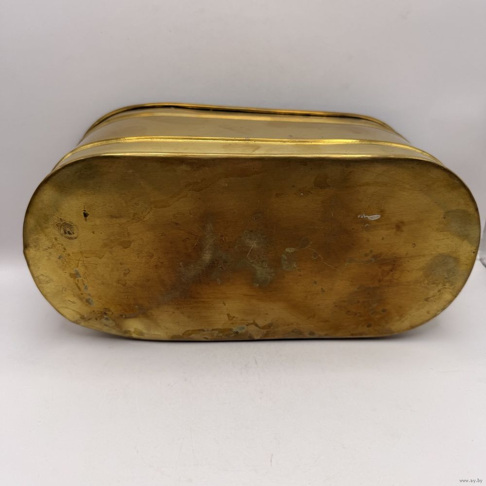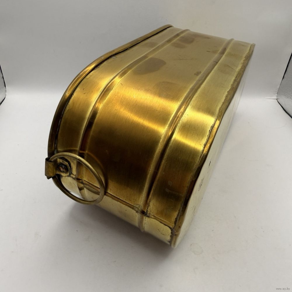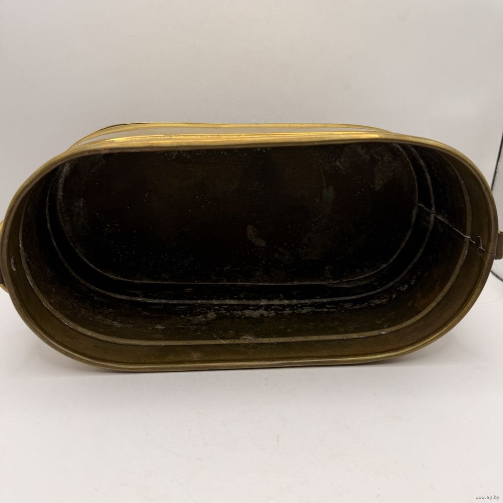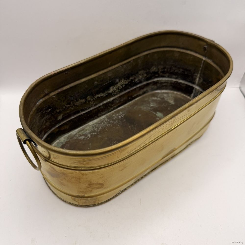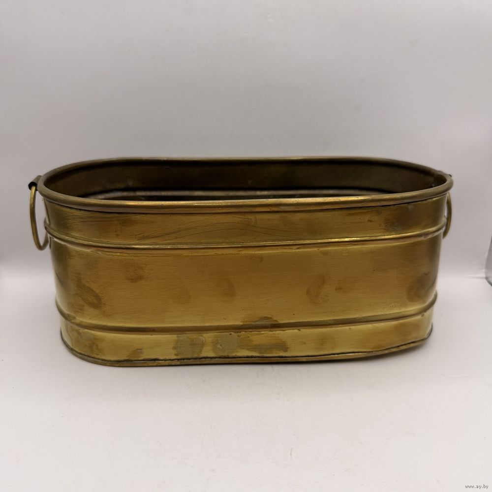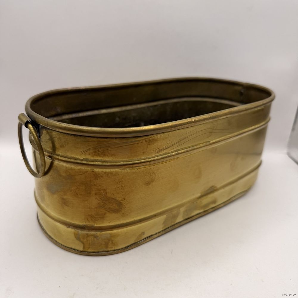 Винтажное латунное кашпо для цветов с ручками-кольцами . Италия. 1970-е г.г. Размер 25 х 12 х 10 см. Естественная патина, следы бытования.
