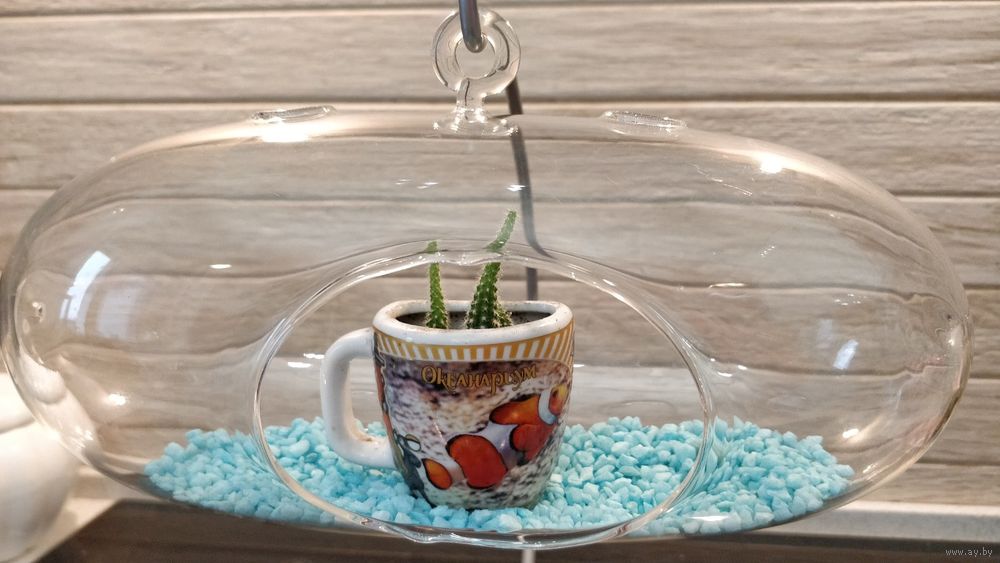 По желанию можно сформировать внутри не только цветочную композицию из кактусов и суккулентов, но также можно оформить это иначе, - всё зависит от фантазии. Изображения на фотографиях носят информационный характер. Продаётся только само изделие, без крепления для возможности установки на горизонтальную поверхность.
