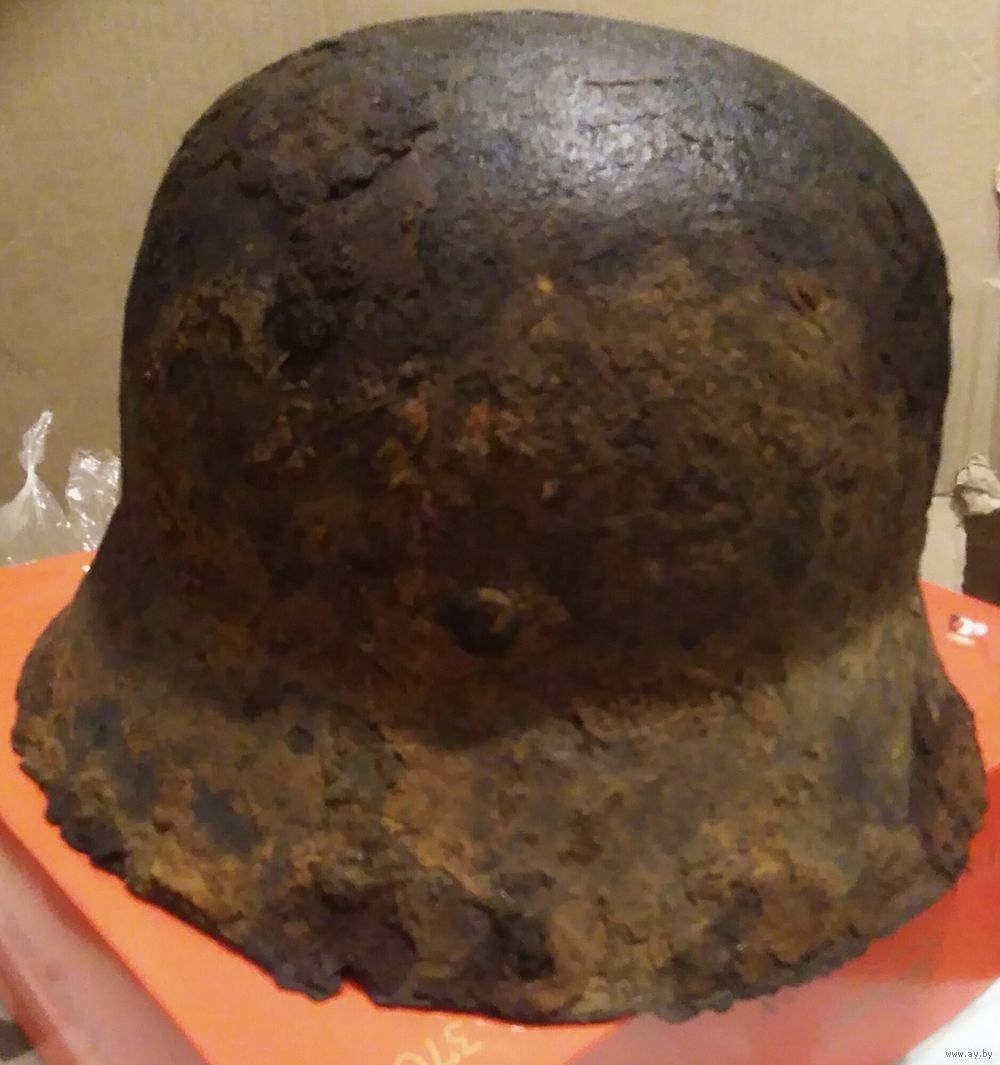 Каска немецкая М-42, 1942, чёрная,не пробита, подшипник на месте, остатки кожи.. Просто помыта. Пересыл на покупателе.