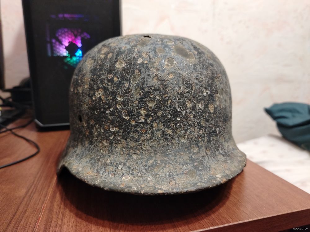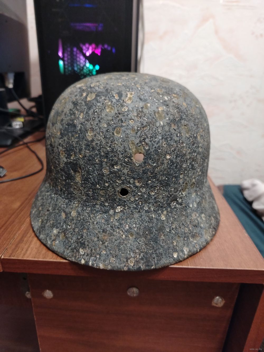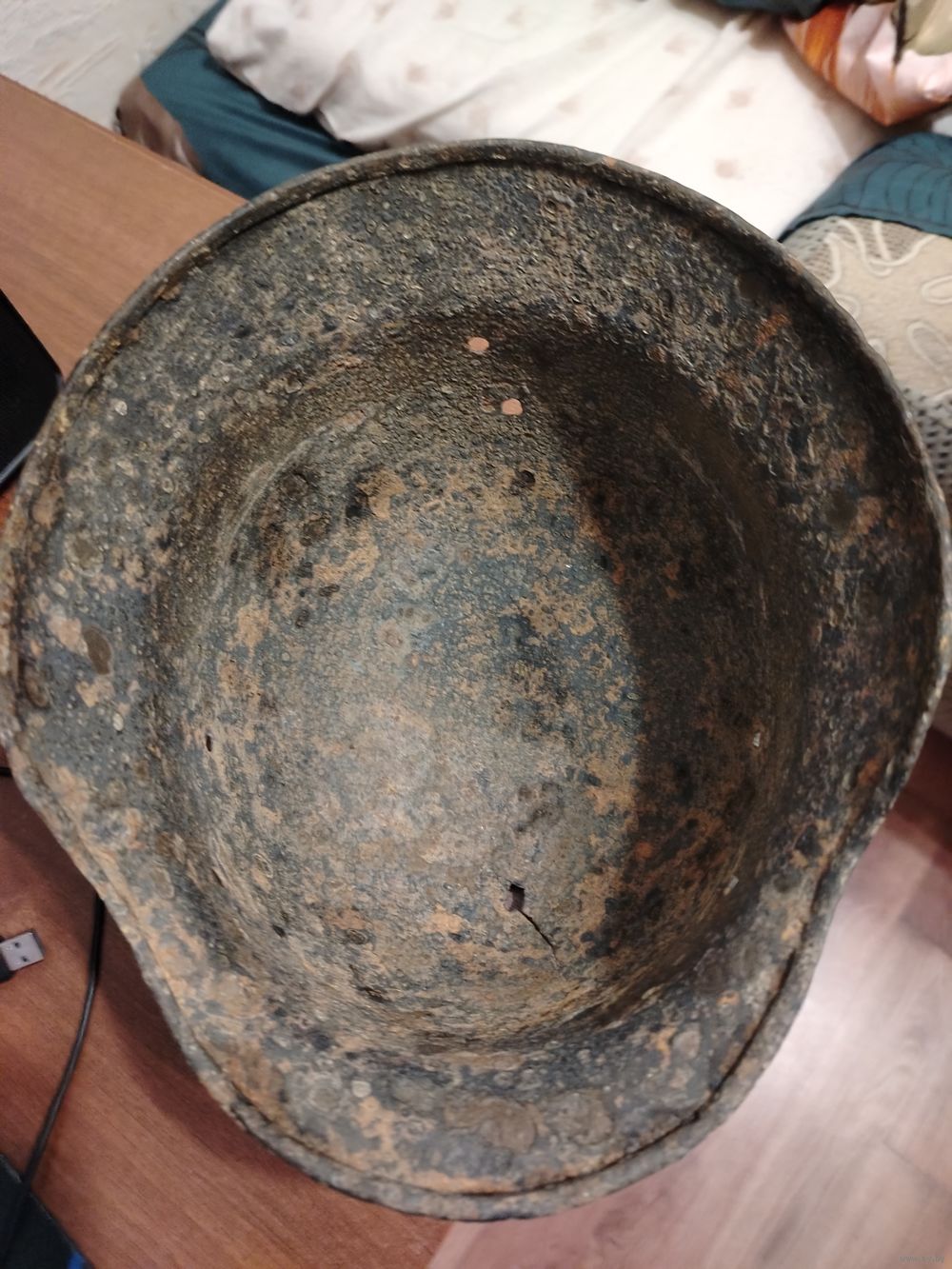 Продам каску, есть очертания дэки, в прямых руках хороший вариант для восстановления, но есть небольшая трещина видна на фото, и два отверстия похоже на пулевое