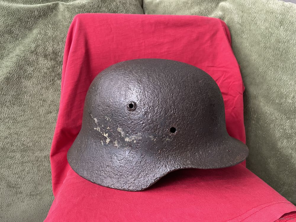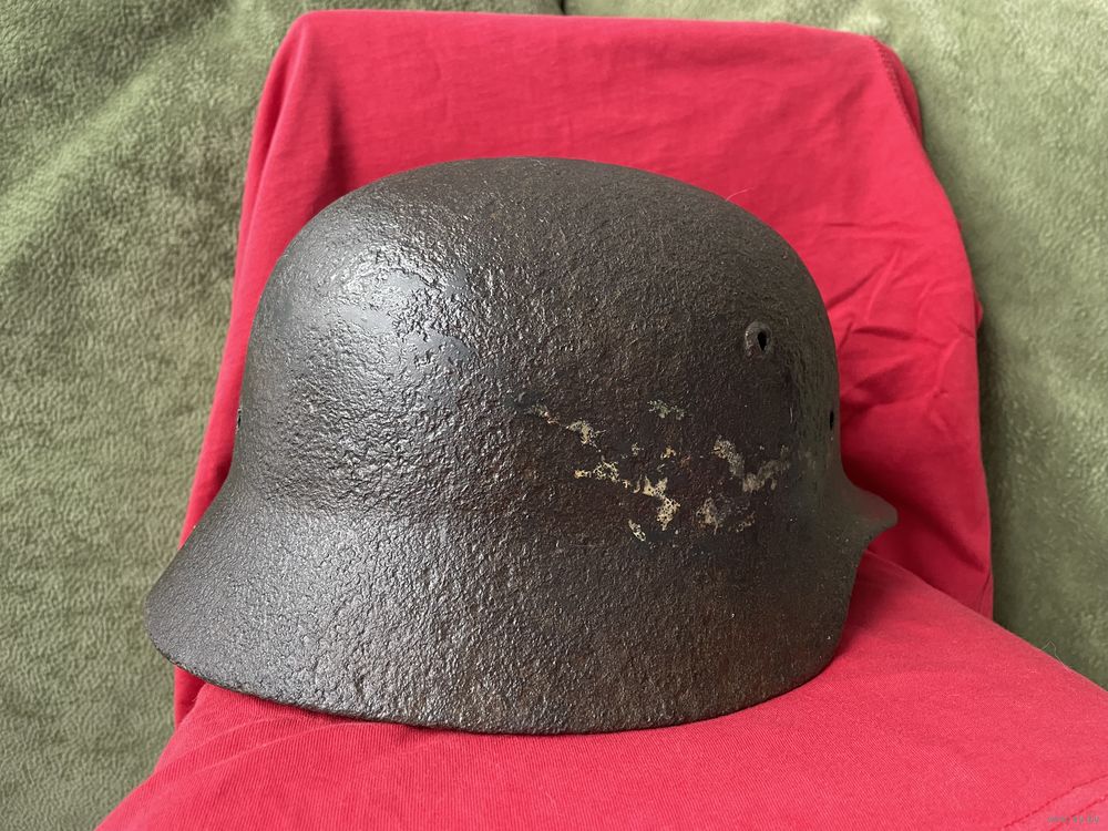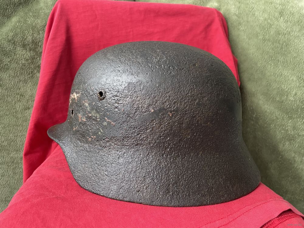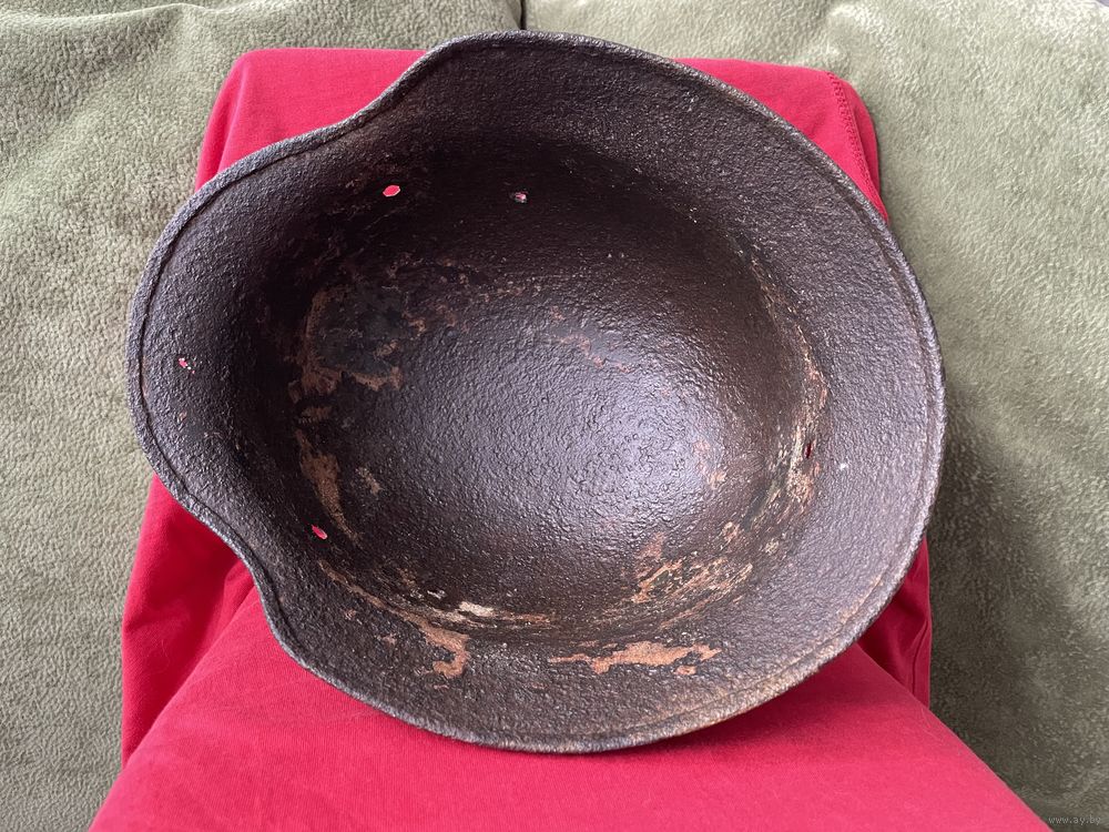 Шлем М35 64 р-р. После чистки просматривается родной окрас и следы перекраса. Шлем очень крепкий, из нюансов - спереди на козырьке небольшой свищ. Вальц целый. Без коржей и залипух, ничего не осыпается, законсервирован. Хороший вариант на полку или для дальнейшего восстановления. Внимательно смотрите фото, они сделаны при дневном освещении и полностью передают состояние.