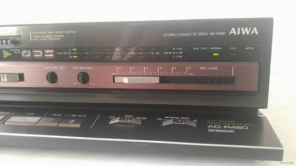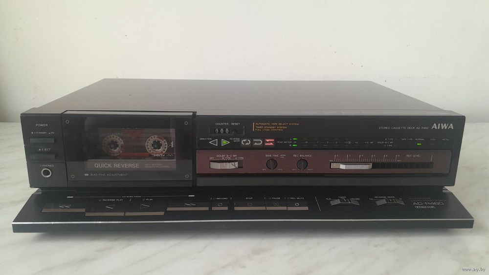 Кассетная дека Aiwa AD-R460, б/у. Модель выпускалась в период 1986-1988 г. Внешнее состояние хорошее (следы использования видны, но катастрофического ничего нет). Крышка перекрашена в черный металлик.