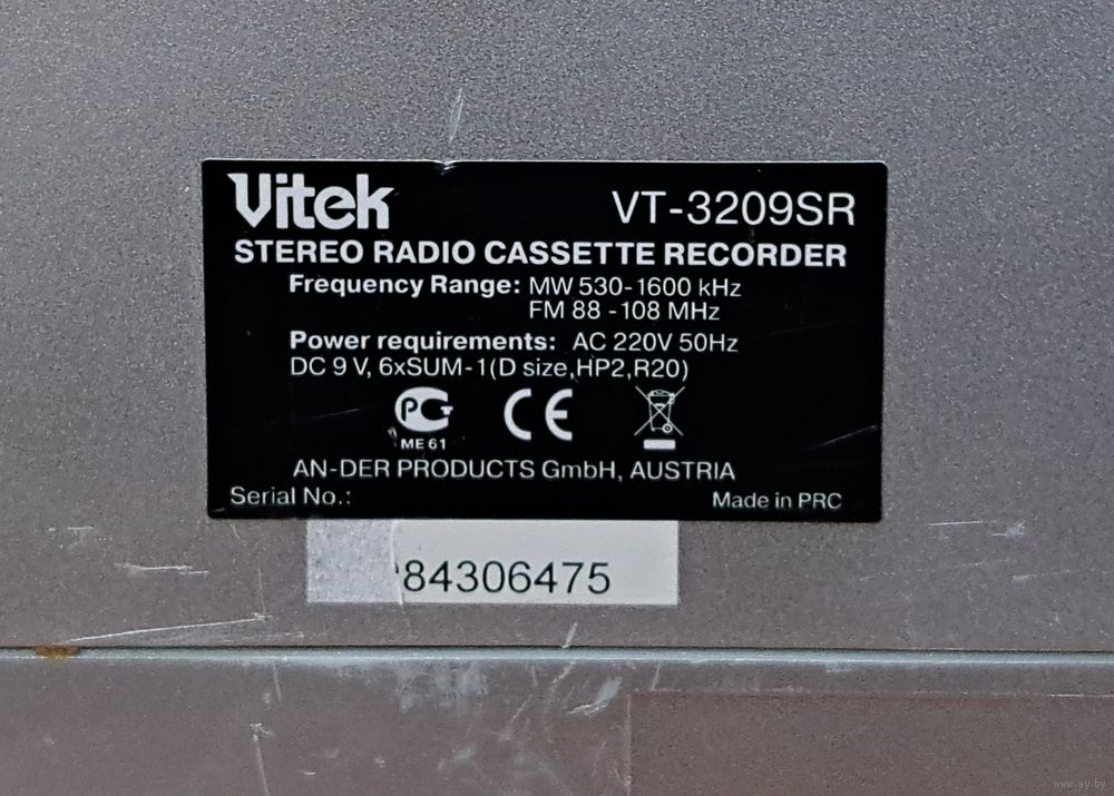 Кассетный магнитофон радио Vitek VT - 3209SR, радио работает, магнитофон "зажовывает пленку".