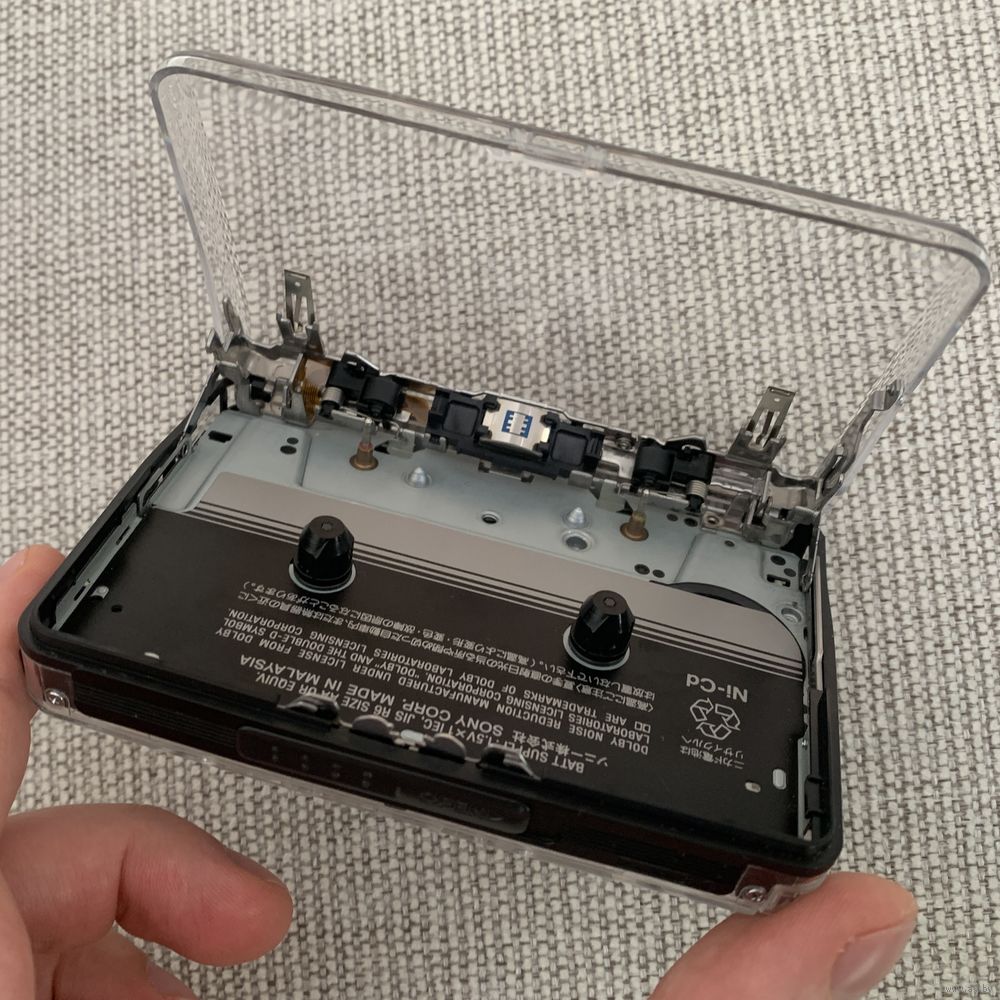 В полностью рабочем состоянии. Воспроизводит и прематывает кассеты в обе стороны.