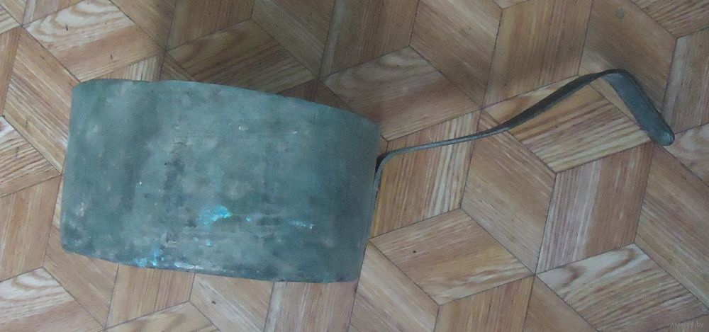 У кастрюли всё родное: полуда, окислы, пыль, грязь. Есть небольшие помятости. На ручке непонятные значки, возможно, 3,8 литра. Высота 11 см, диаметр 21,5 см. Вес чуть более 1 кг.