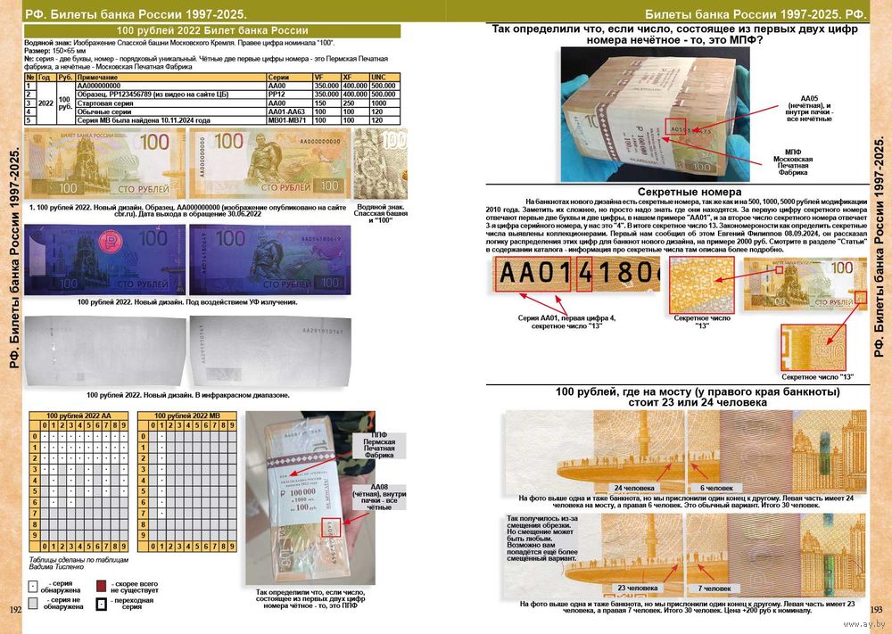 - На банкнотах нового образца зашифровано место производства банкноты (ППФ или МПФ) - в каталоге всё разъяснено!