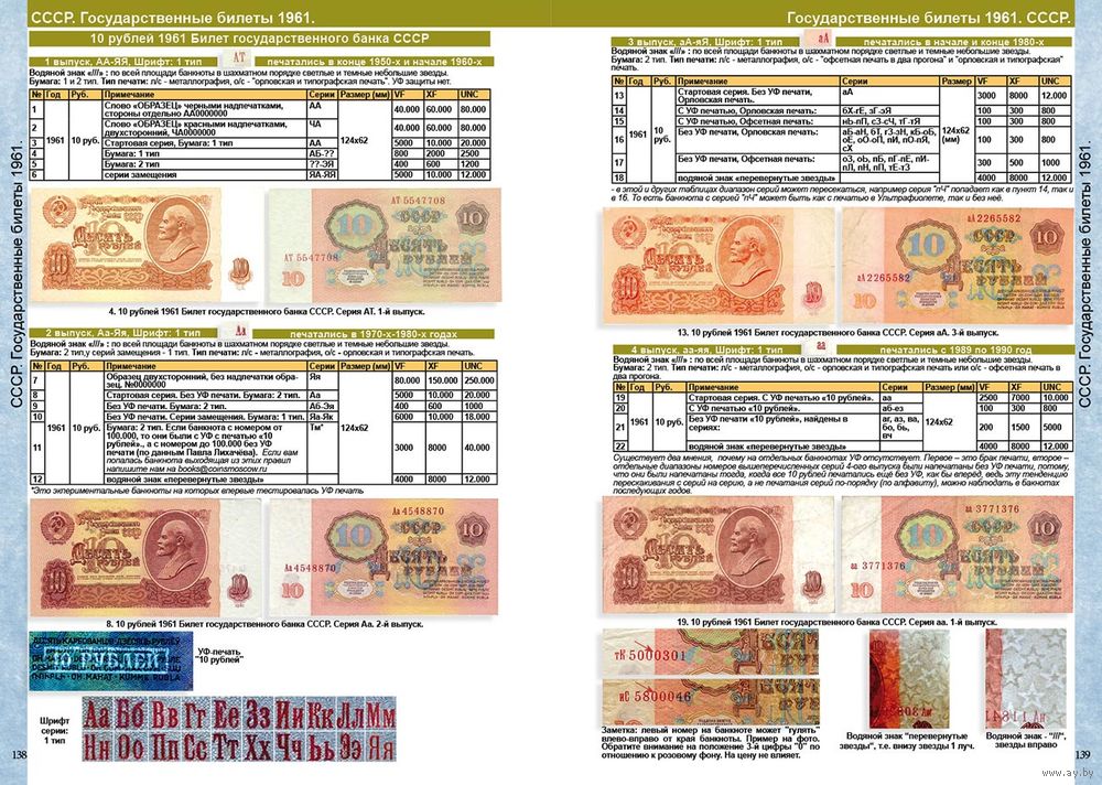 - Для банкнот 1961 года описаны такие способы печати как металлография, орловская печать и офсетная печать.