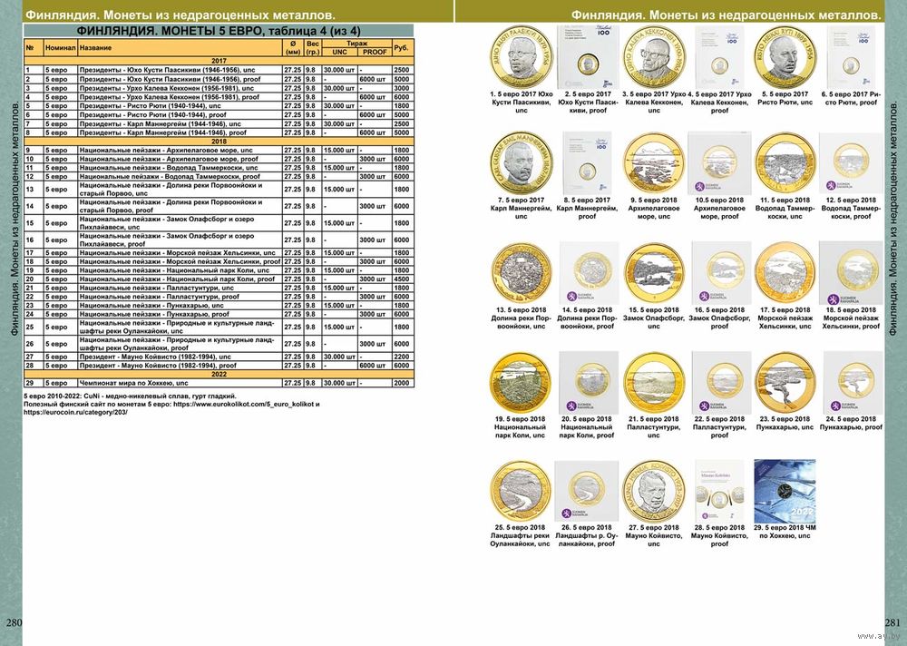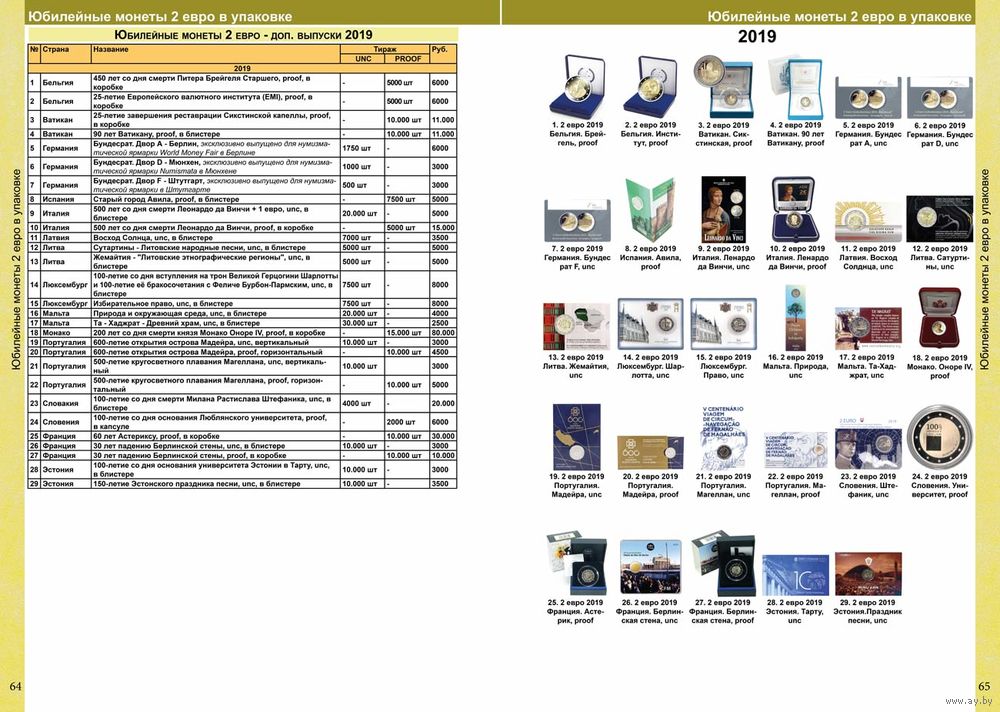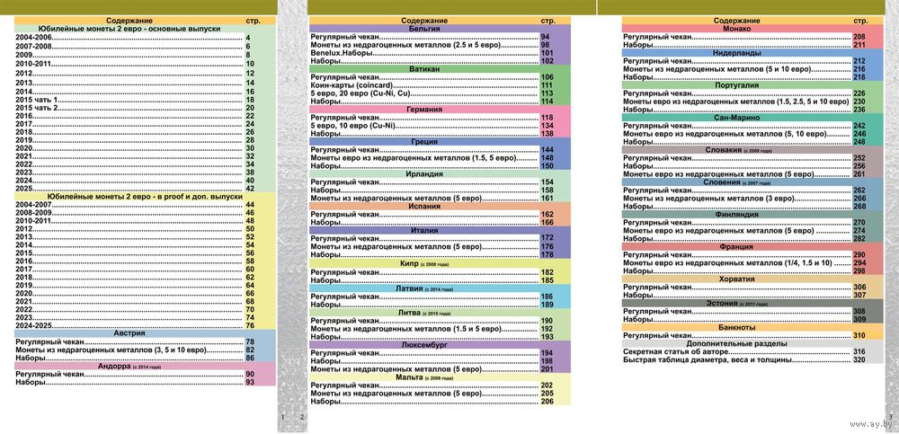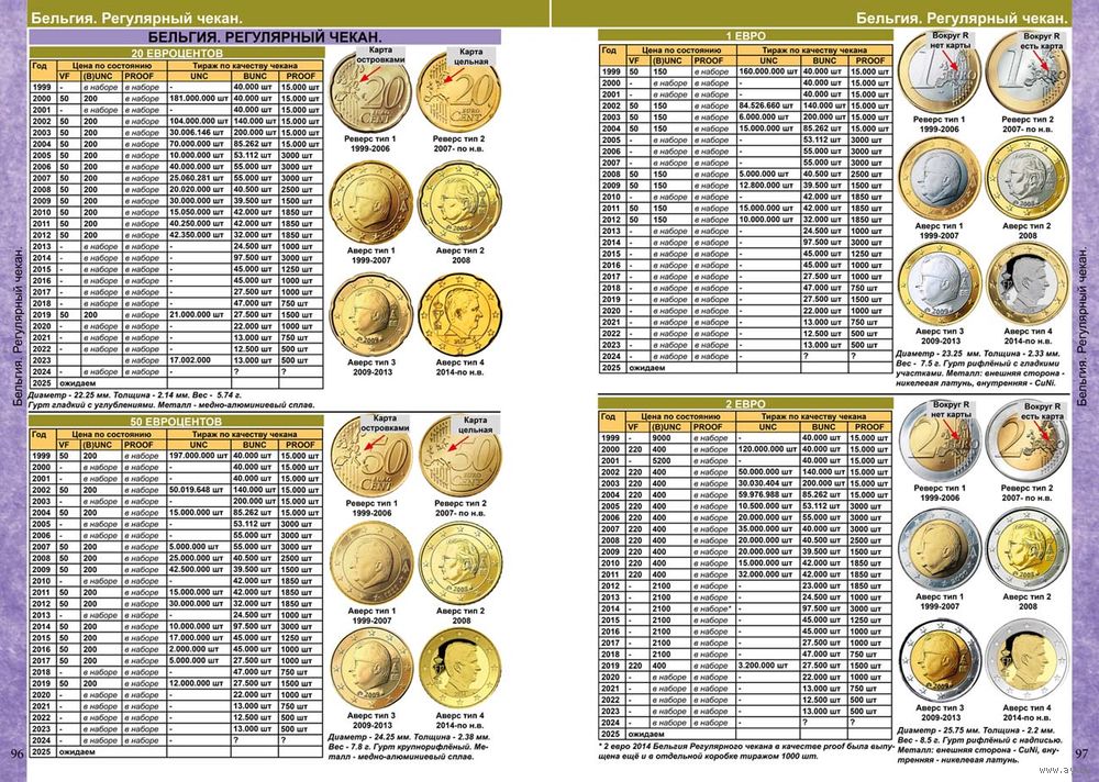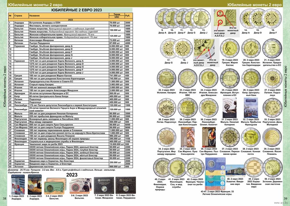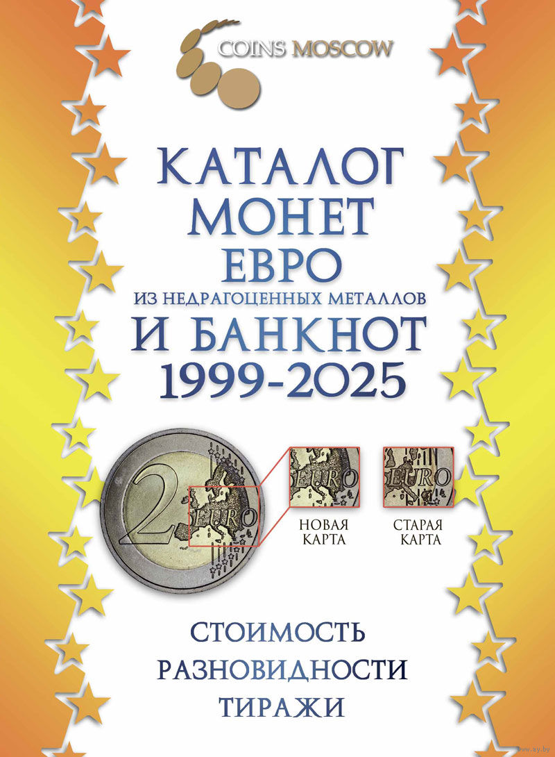 Каталог монет Евро из недрагоценных металлов и банкнот 1999-2025 с ценами.