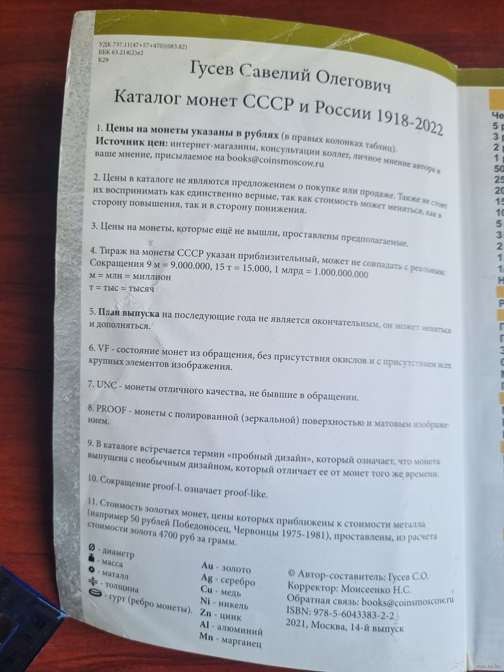 Каталог Гусева С.О монет СССР и России 1918-2022 годов. Тираж, разновидности, выпуски, стоимость. 165 страниц.