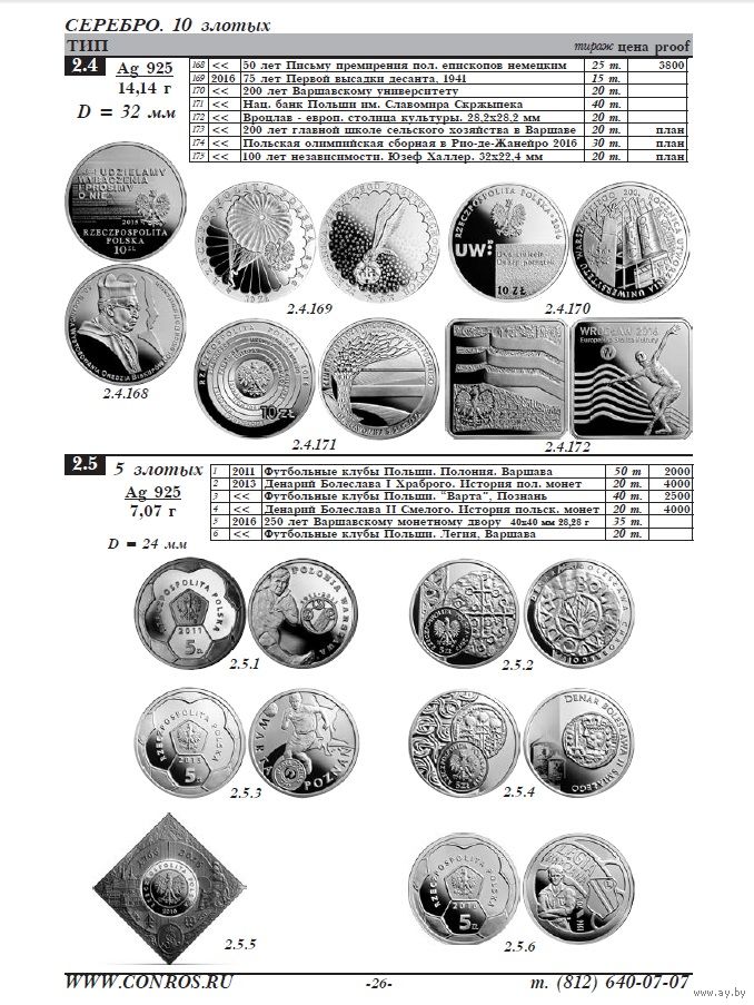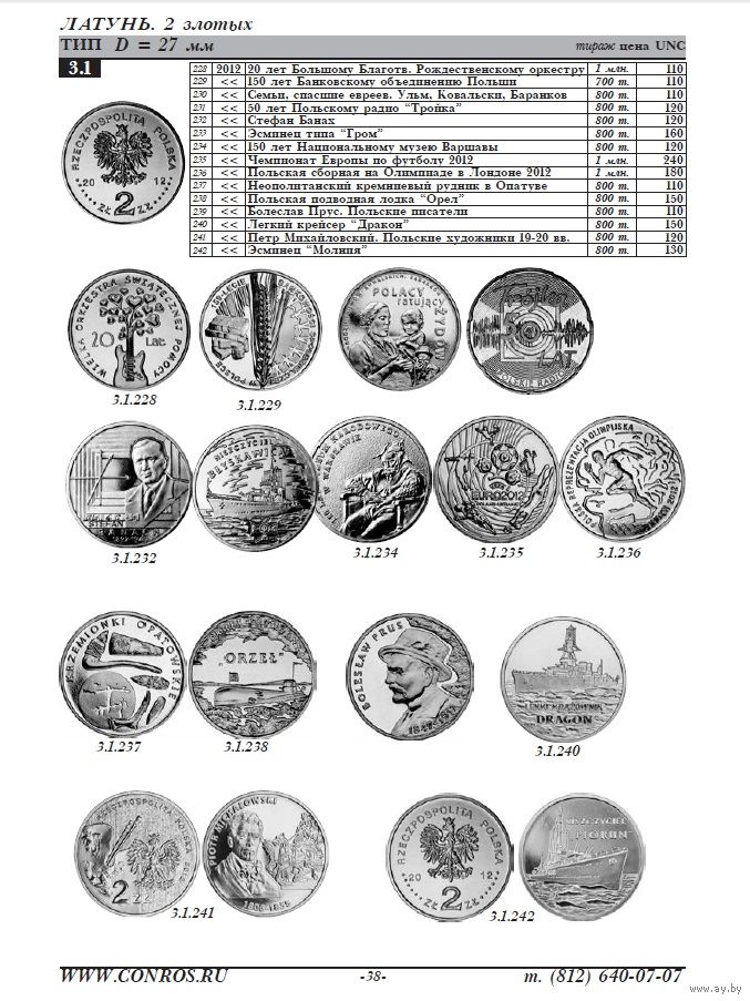 Справочник включает в себя описание и изображение памятных и юбилейных монет из золота, серебра, медно-никелевого сплава, латуни, также в него включён раздел, посвященный инвестиционным монетам «Белый орел». На страницах издания приводится информация о тиражах, пробе и весе монет, указаны диаметр и состояние монеты. Обращаем внимание, что в 4-й редакции справочника представлены реальные рыночные цены на ВСЕ монеты каталога! Данный каталог-справочник - единственный среди подобных периодических изданий - публикует цены на предлагаемые товары, актуальные на момент его издания.