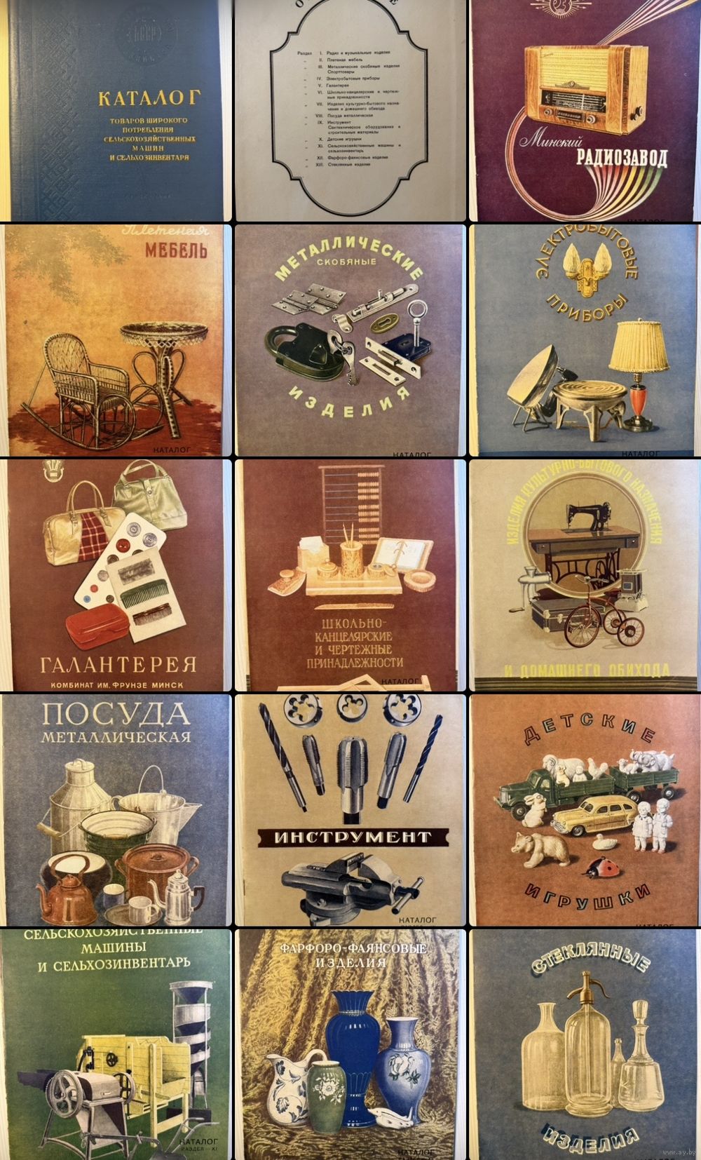 Каталог товаров широкого потребления сельскохозяйственных машин и сельхозинвентаря .Совет Народного хозяйства БССР. Минск 1957 год. Папка с 13 книжками. Полный комплект. Состояние хорошее. Редкость!