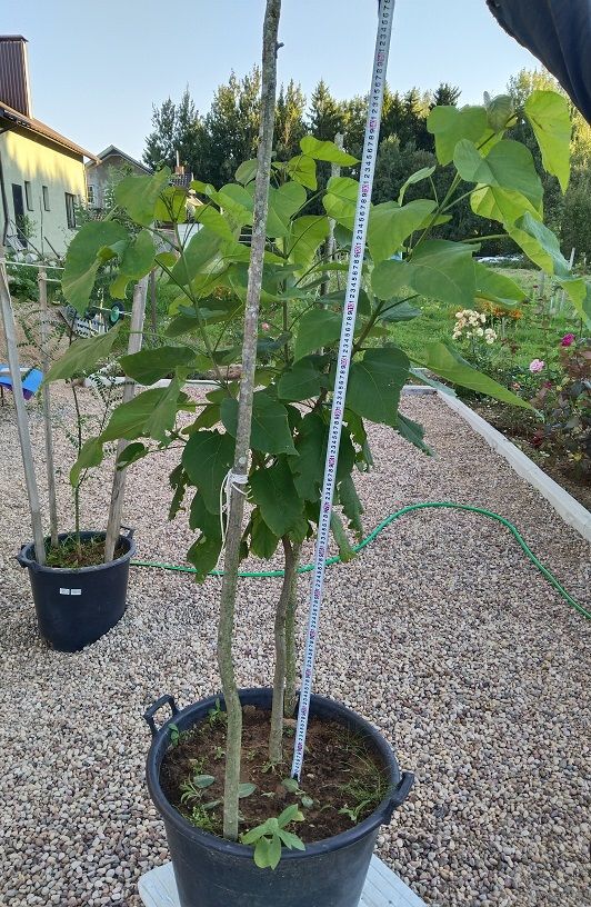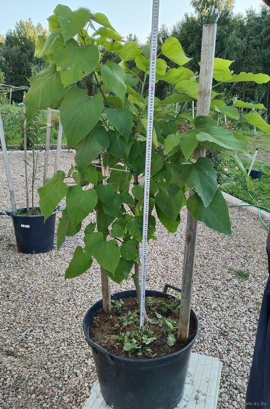 Продаю три 3-х летних саженца - Катальпа прекрасная (великолепная), (дерево счастья).Стройный ствол дерева украшают пирамидальная крона, с огромными зелёными листьями и нежно-белые бутоны в период цветения. Цветёт в Беларуси приблизительно с 10 по 25 июля. Во время цветения (в солнечную погоду) пахнет исключительно хорошо. Хороший медонос. Растение светолюбимое и влаголюбимое, желательно садить в мало ветренное место. В первую зиму требует укрытия от ветра. Может выдерживать морозы до -28 градусов.