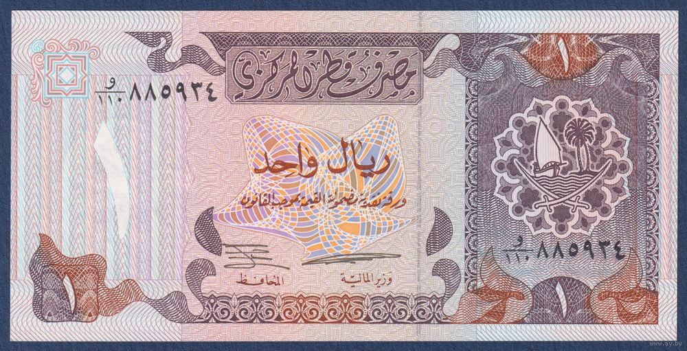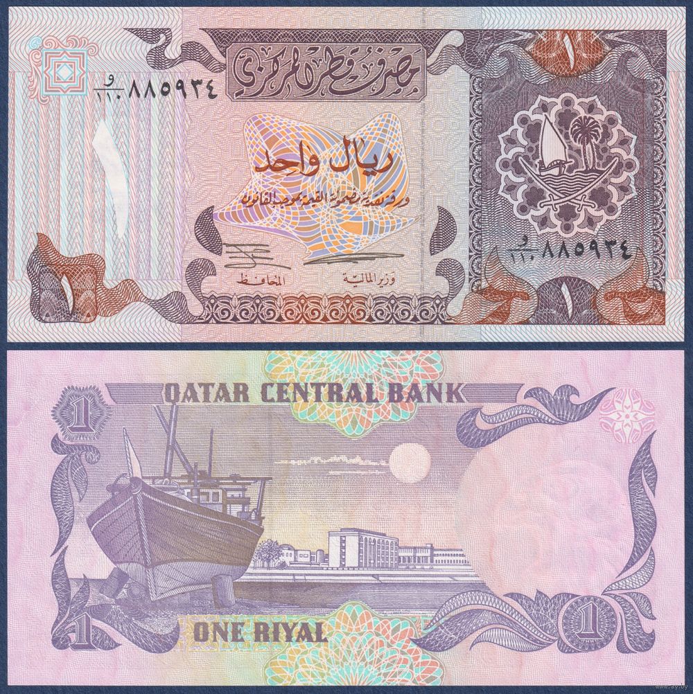 Катар, 1 риал 1996 г, P-14 (лодка доу, министерство финансов, дворец эмира), UNC