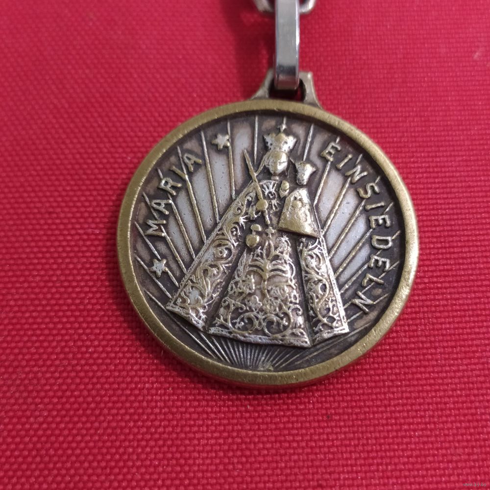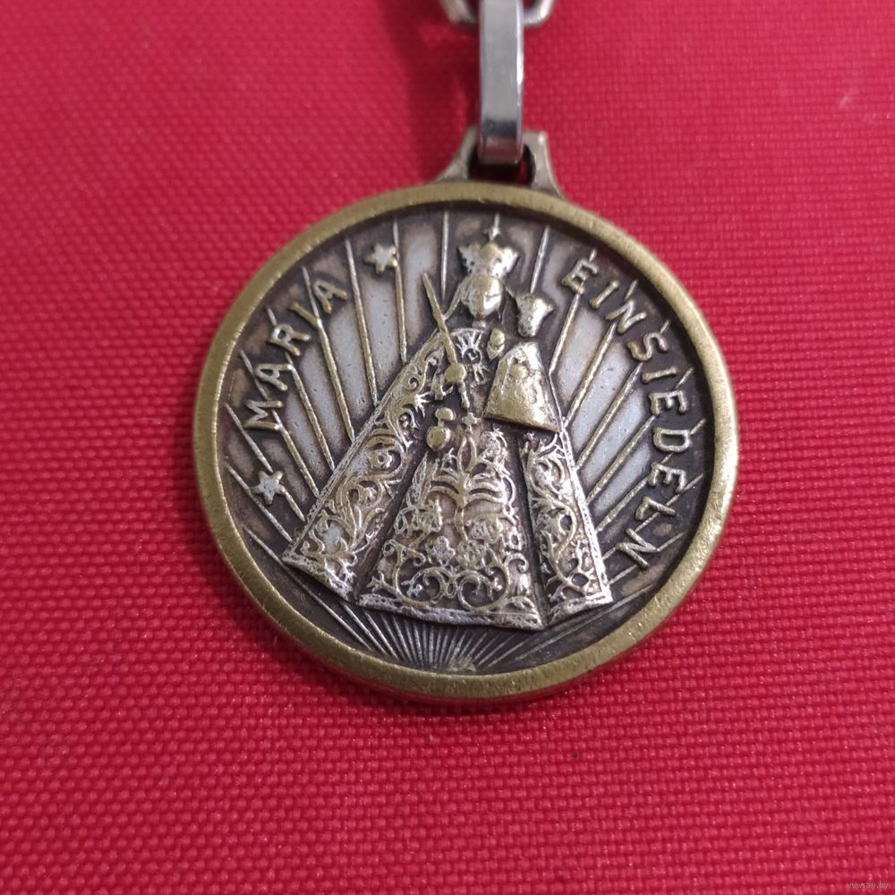 Католический медальон Пресвятой Девы Марии Айнзидельнской (Швейцария, примерно 1950-е гг.), редкий, сам медальон из латуни посеребреной, произ-ва Франция.,см.фото, в коллекцию, спасибо.